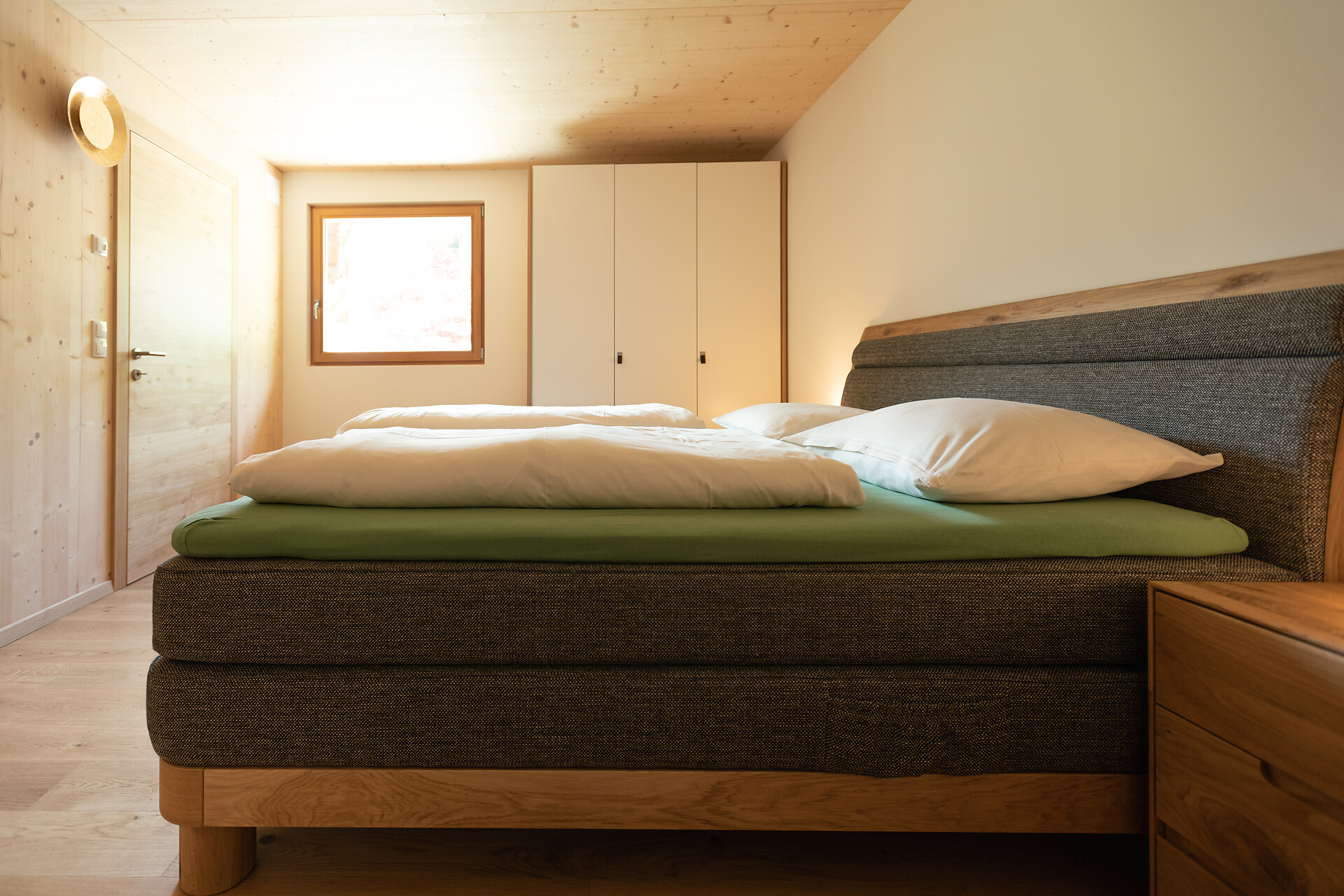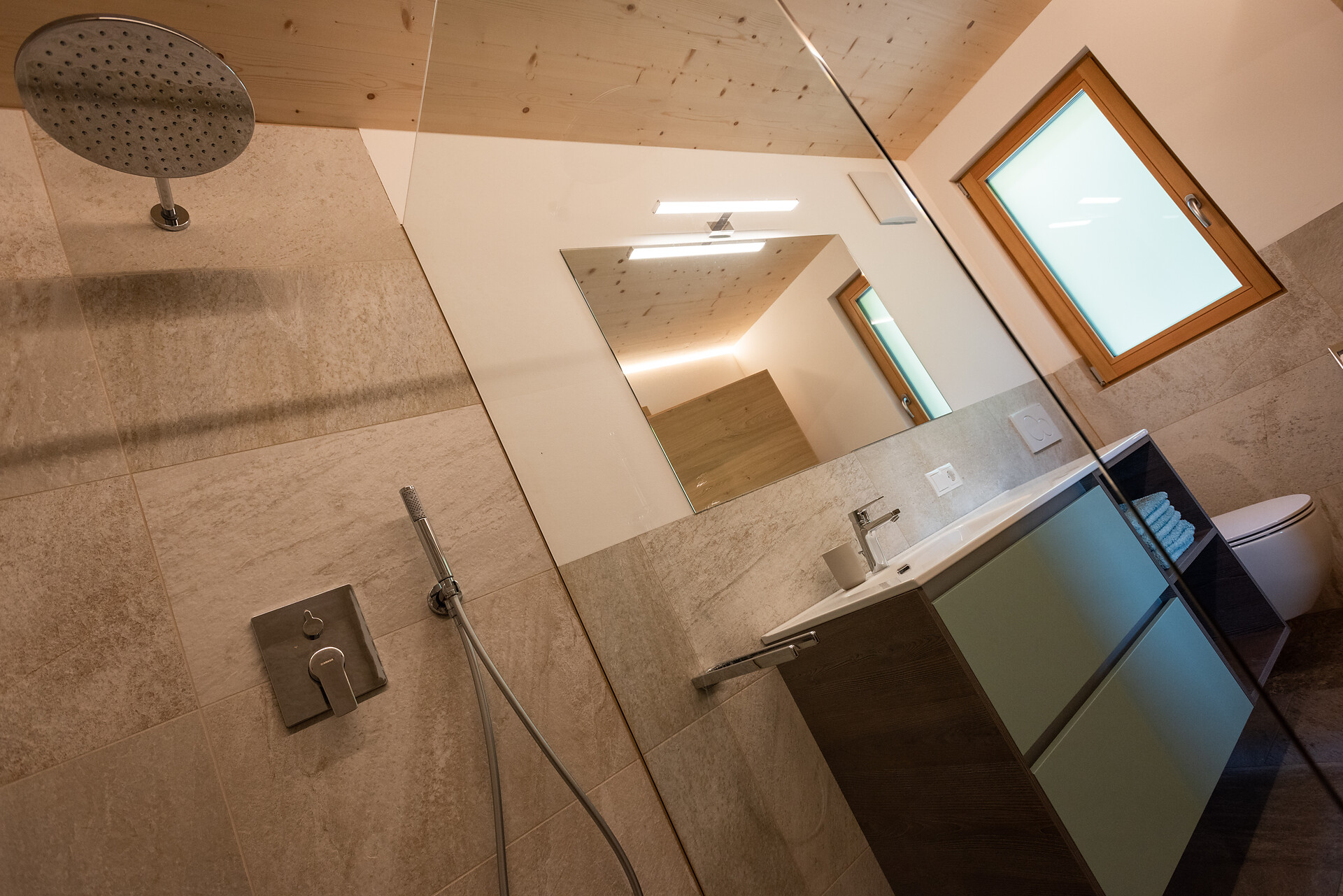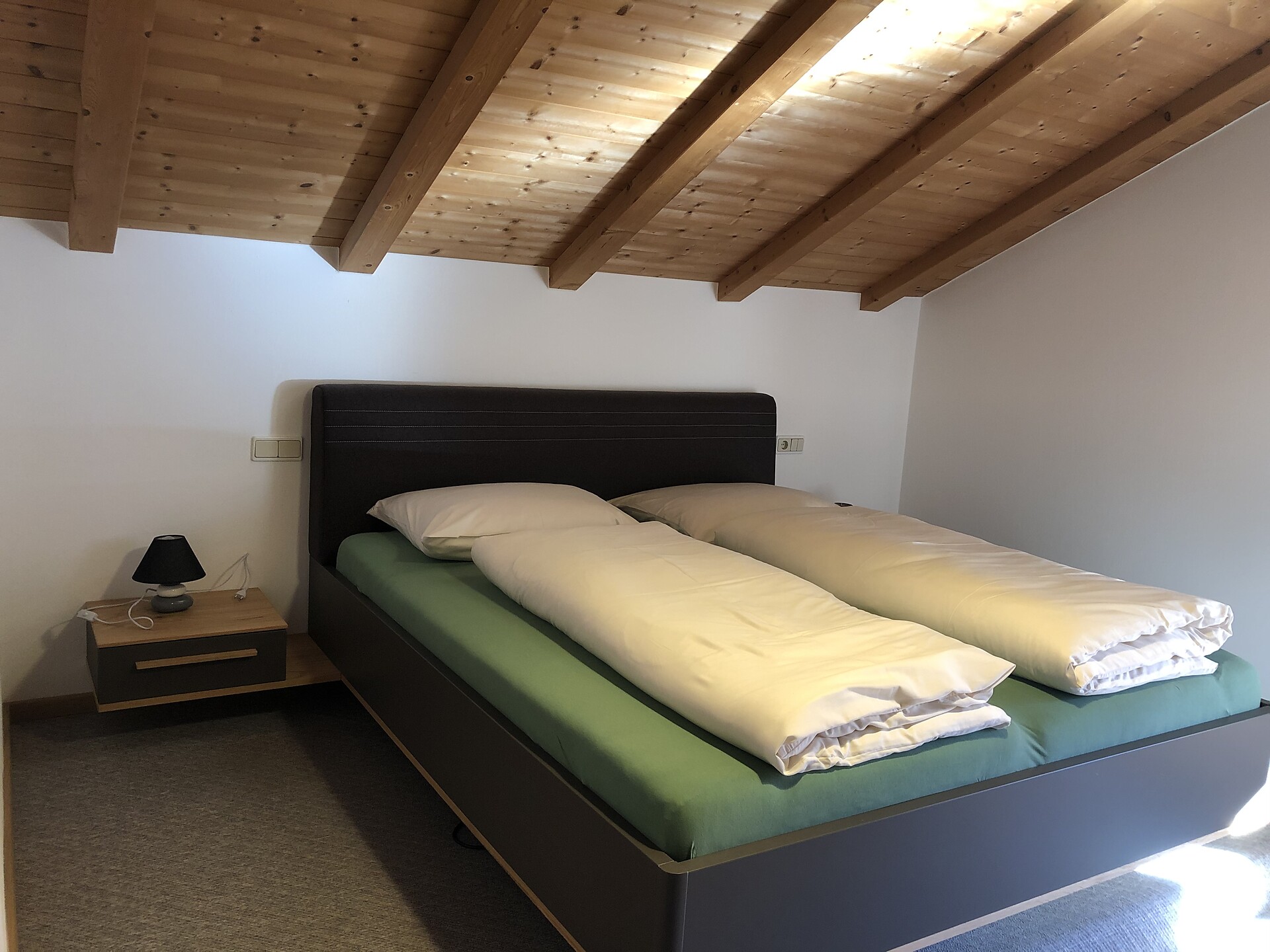 1 chalet di legno 60 m2 appena costruito con arredamento di alta qualità con terrazzo e spaziosa area esterna, 1 camera da letto con letto matrimoniale, 1 soffitta con 2 letti singoli (Altezza 1,65 m – 20 m2), 1 cucina abitabile completamente e generosamente attrezzata e bagno.