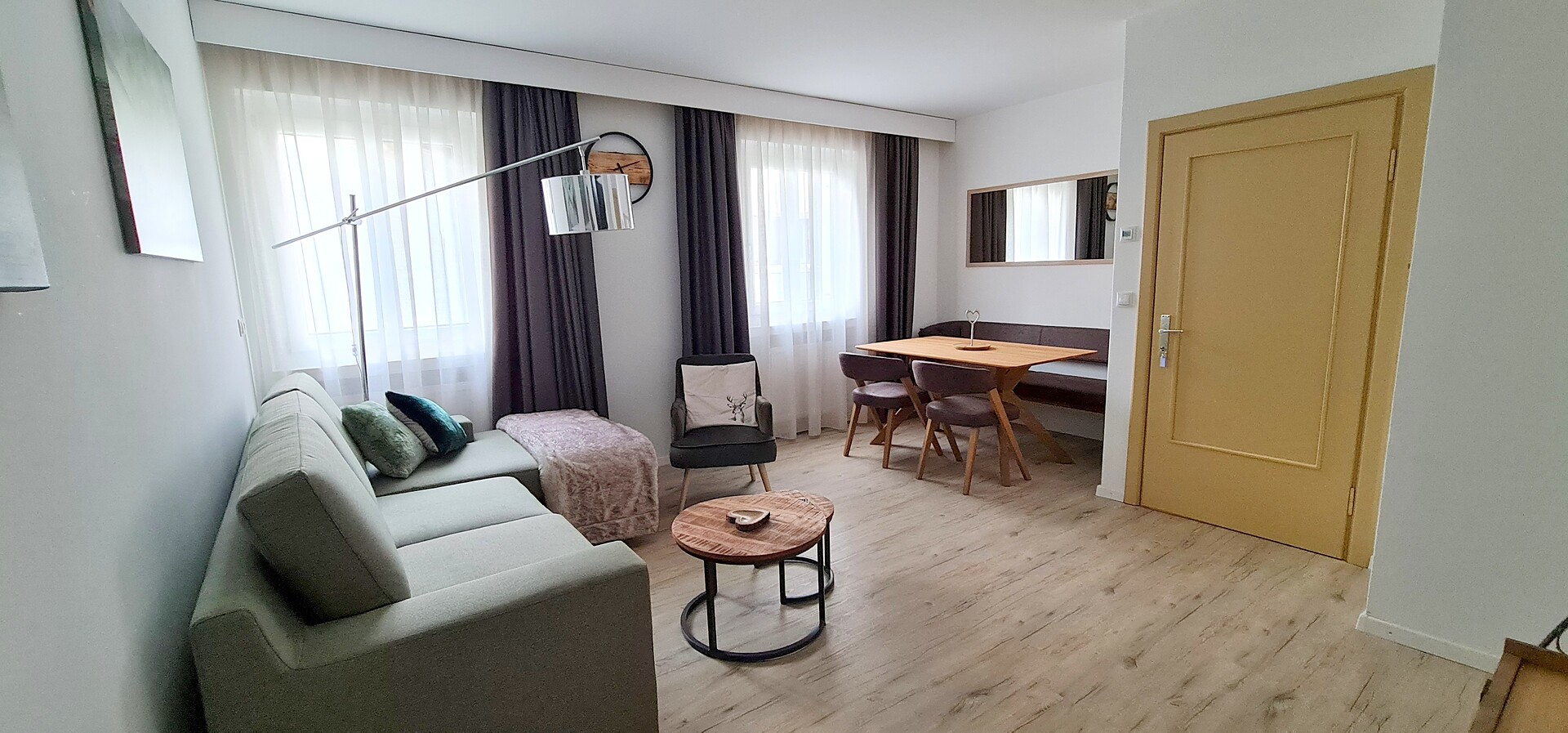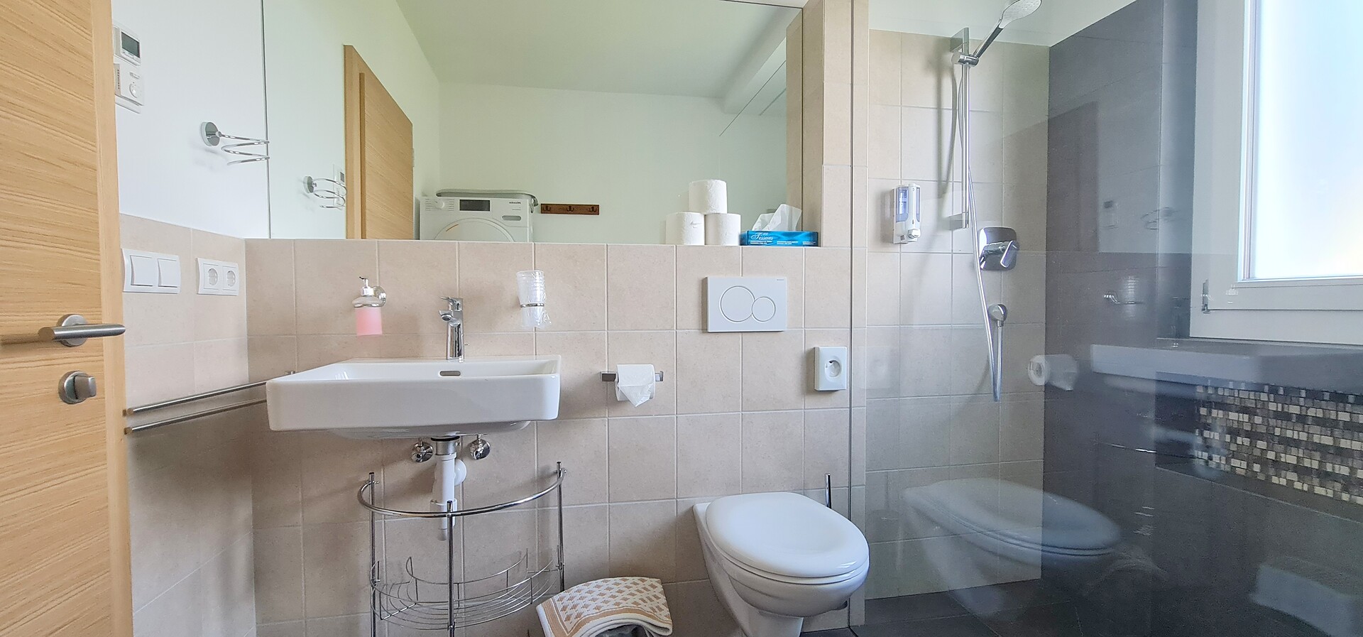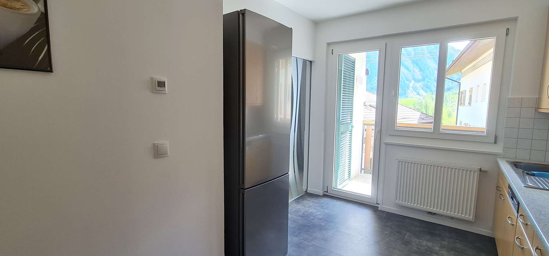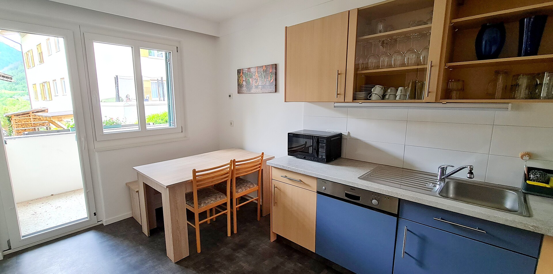 110m² appartamento con 1 camera singola e 2 camere doppie con SAT-TV, salotto con divano, SAT-TV e tavolo da pranzo, cucina completamente attrezzata con balcone e vista sulle montagne, macchina per il caffè, WIFI-Internet, cassaforte e bagno con lavatrice, asciugatrice, servizi, doccia, asciugacapelli e prodotti da bagno - biancheria e asciugamani inclusi