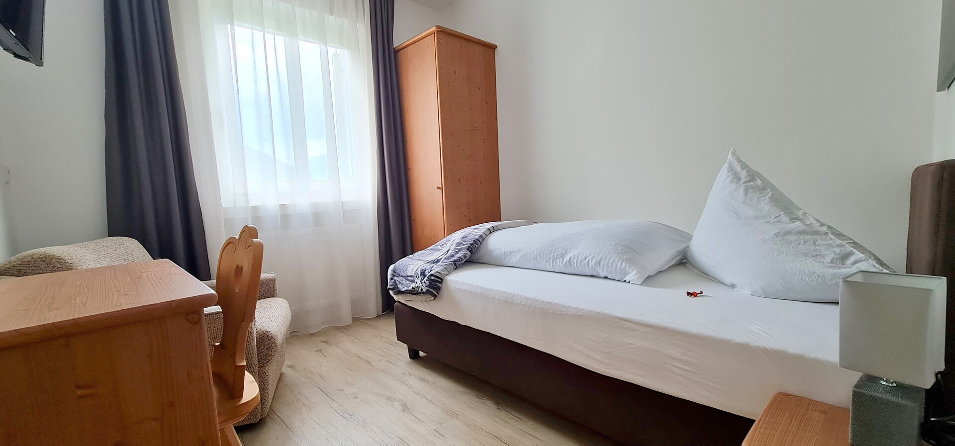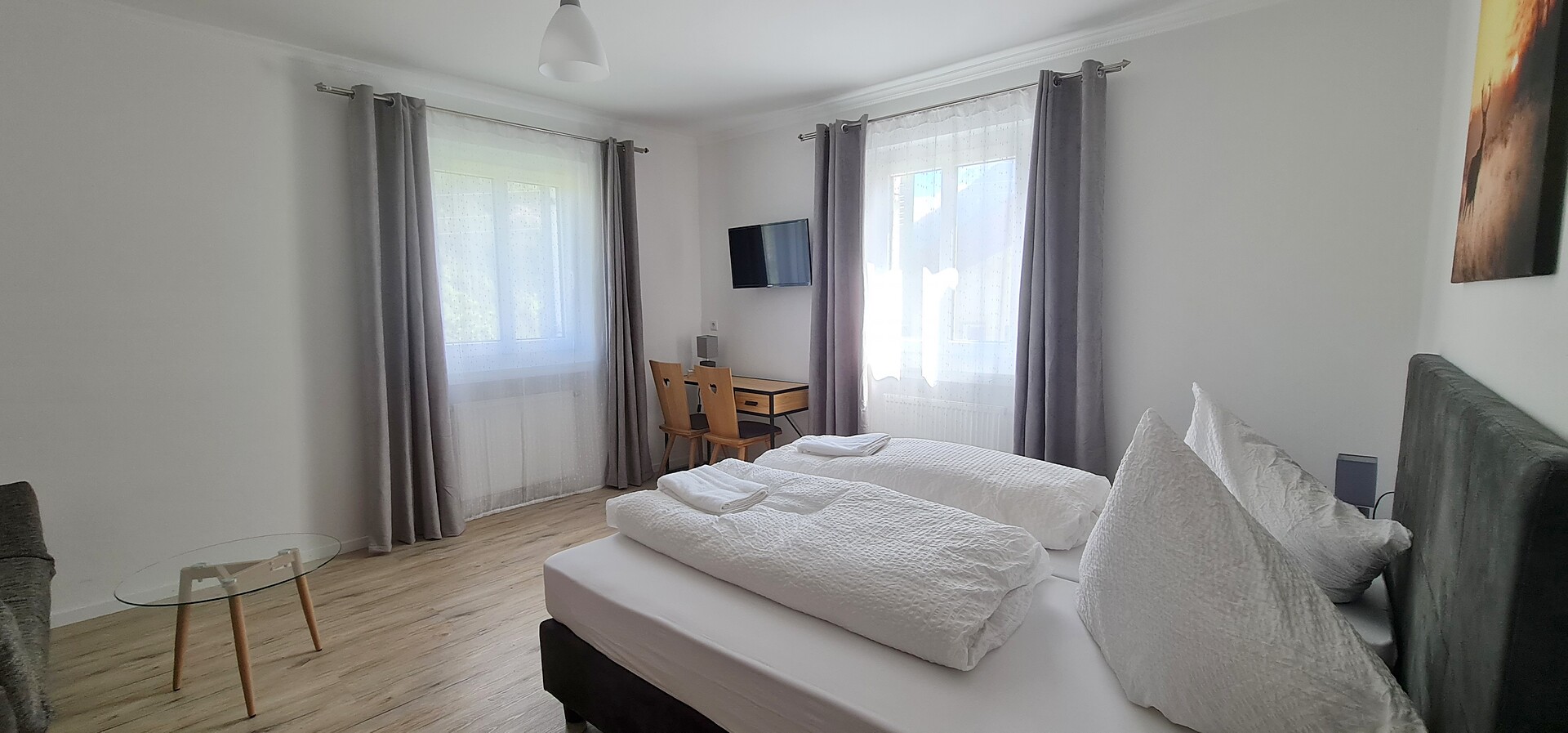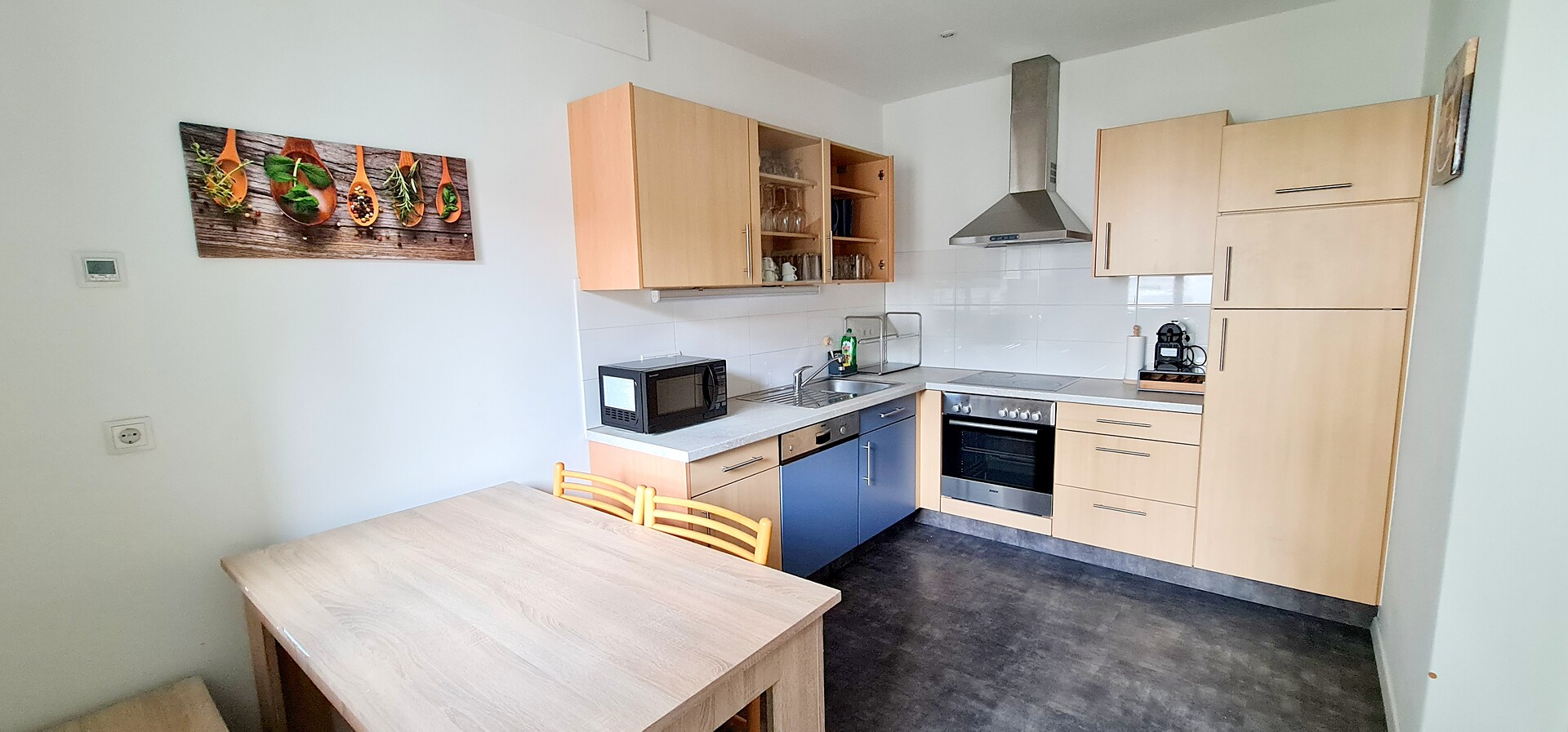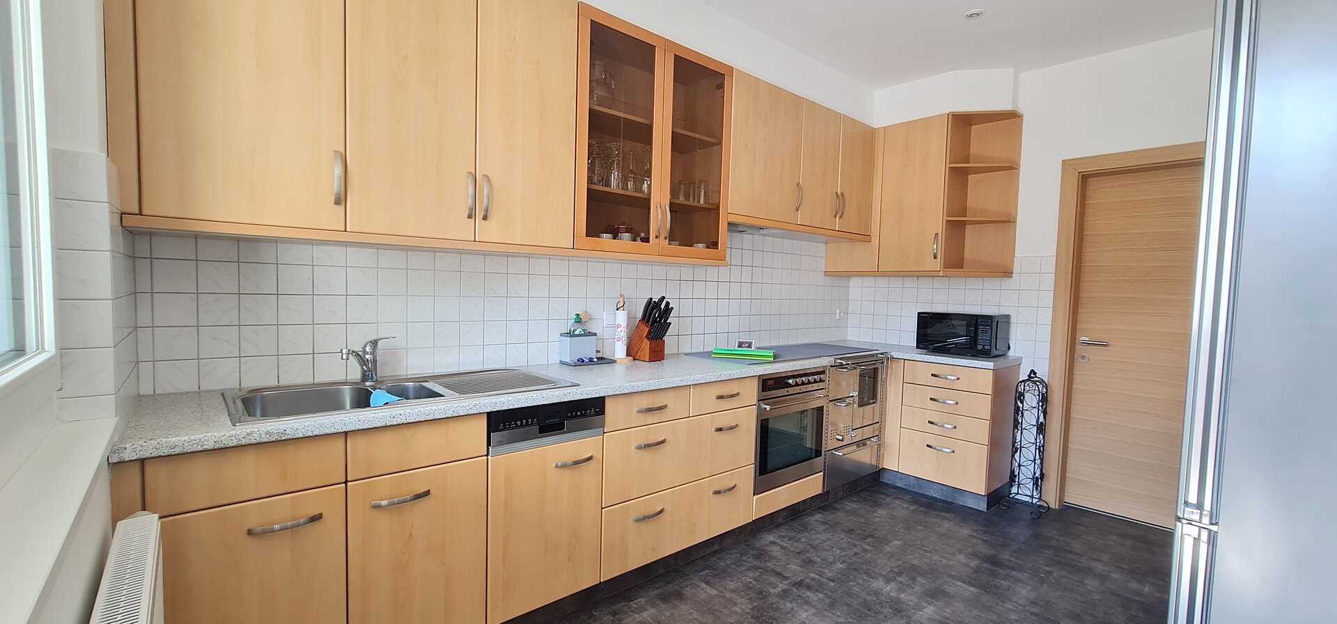 110m² appartamento con 1 camera singola e 2 camere doppie con SAT-TV, salotto con divano, SAT-TV e tavolo da pranzo, cucina completamente attrezzata con balcone e vista sulle montagne, macchina per il caffè, WIFI-Internet, cassaforte e bagno con lavatrice, asciugatrice, servizi, doccia, asciugacapelli e prodotti da bagno - biancheria e asciugamani inclusi