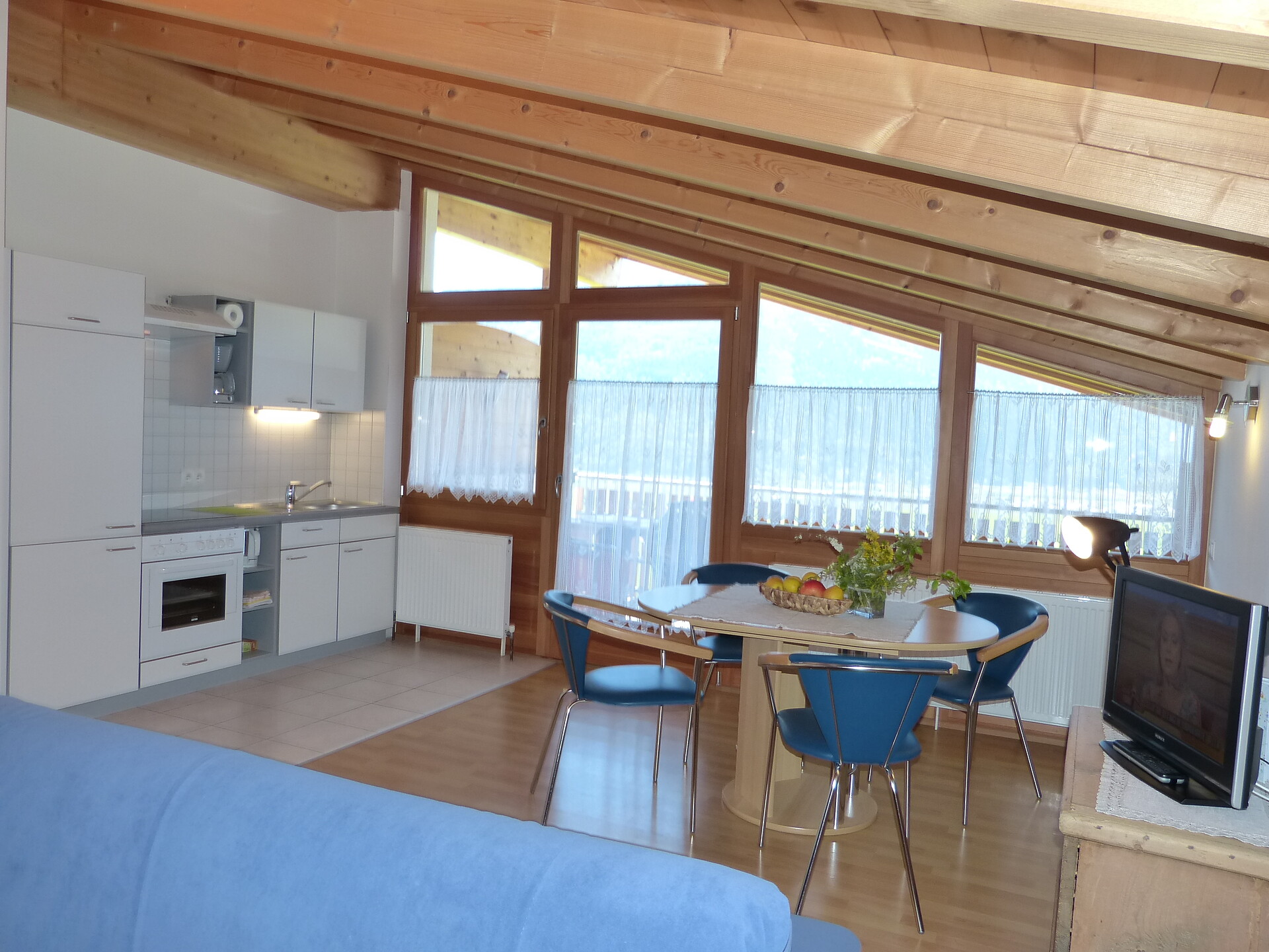 Nel sottotetto della nostra casa si trova l'appartamento“Enzian” arredato con un amore particolare per i dettagli. É un monolocale (29m²) che può accogliere da 2 fino a 4 persone. L'appartamento ha un balcone con una splendida vista. A disposizione ci sono: l’angolo cucina con la macchina del caffè, una stanza con letto matrimoniale, un divano letto per 2, TV satellitare, bagno con doccia, e servizi igenici. Biancheria letto e bagno è compresa. Per i nostri ospiti ci sono a disposizione i parcheggi all’aperto e sottotetto. Il prato davanti alla nostra casa vi invita a riposare, rilassarsi e a giocare.