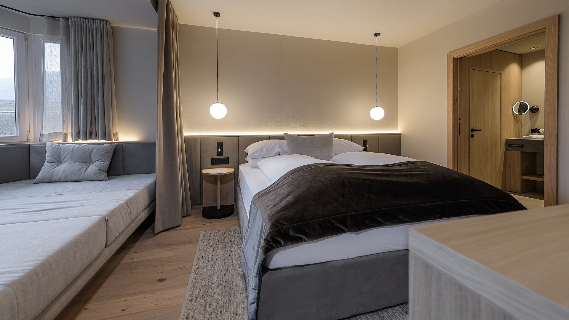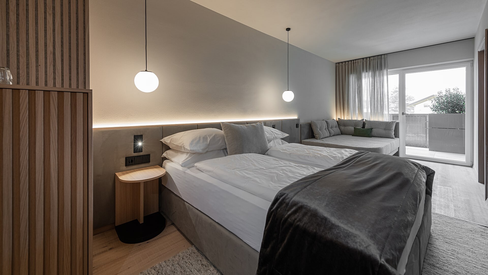 La particolarità che da sempre caratterizza le nostre camere e suite è la vista che si apre sulle montagne; tuttavia, c’è da dire che anche l’arredamento, elegante e pregiato, invita al relax. In seguito ai lavori di ristrutturazione, durante i quali gran parte delle unità abitative saranno rinnovate e dotate di aria condizionata, potrete scoprire ciò che di nuovo vi attende: oltre ai cambiamenti indoor, come l’aggiunta di una cameretta separata per i bambini nelle suite familiari, saranno ampliati anche i balconi al fine di garantirvi ancora più comfort.