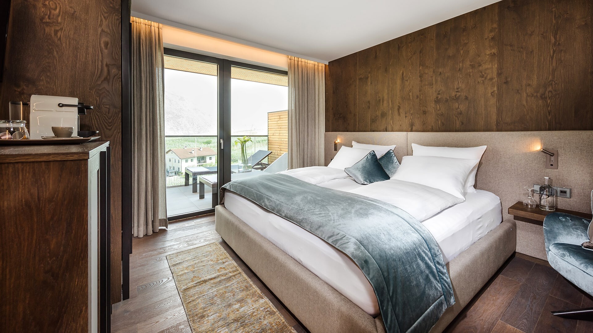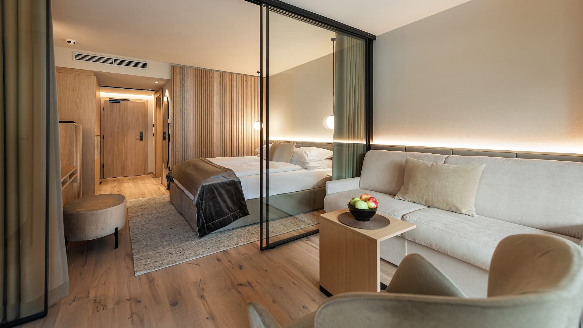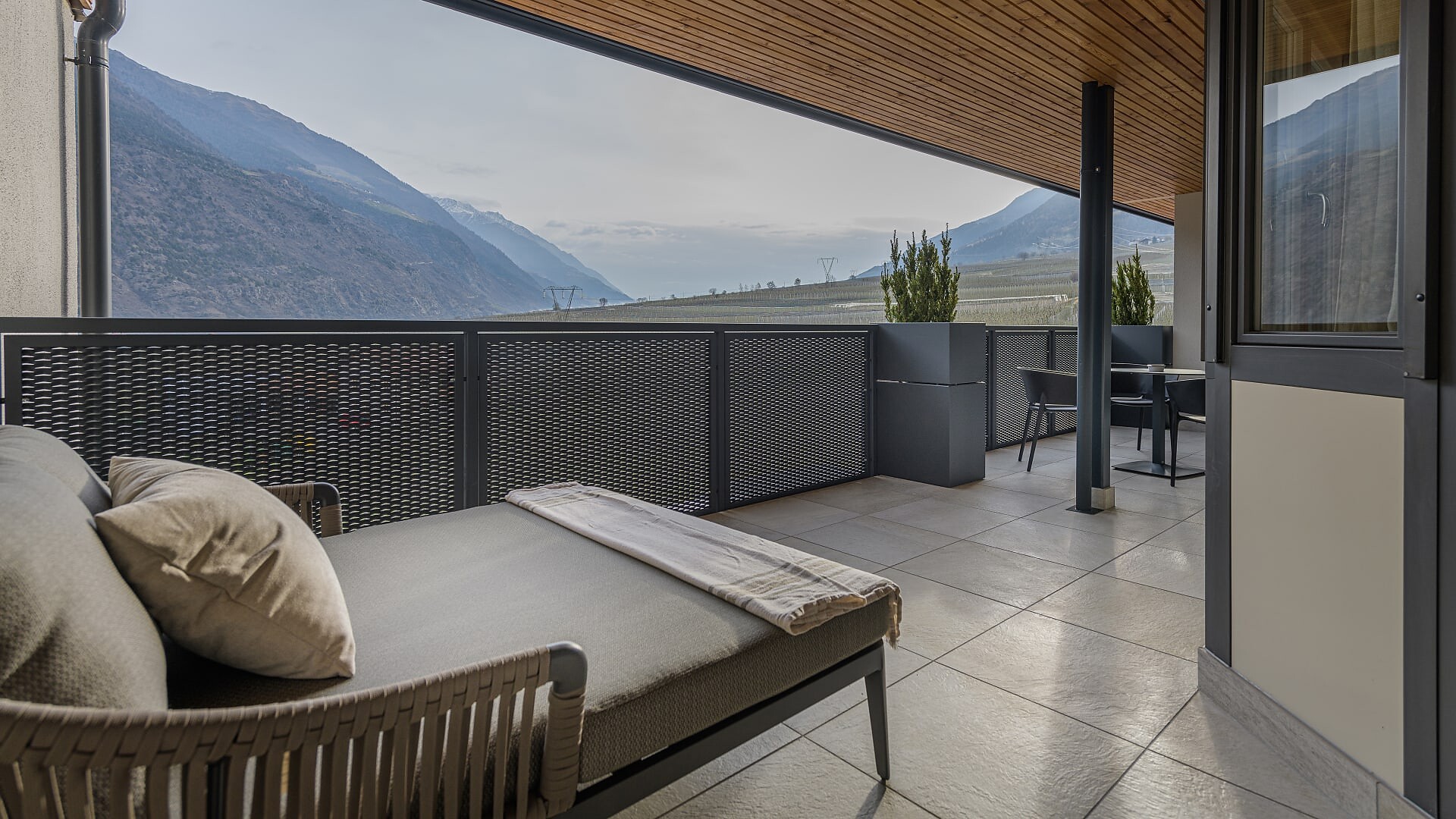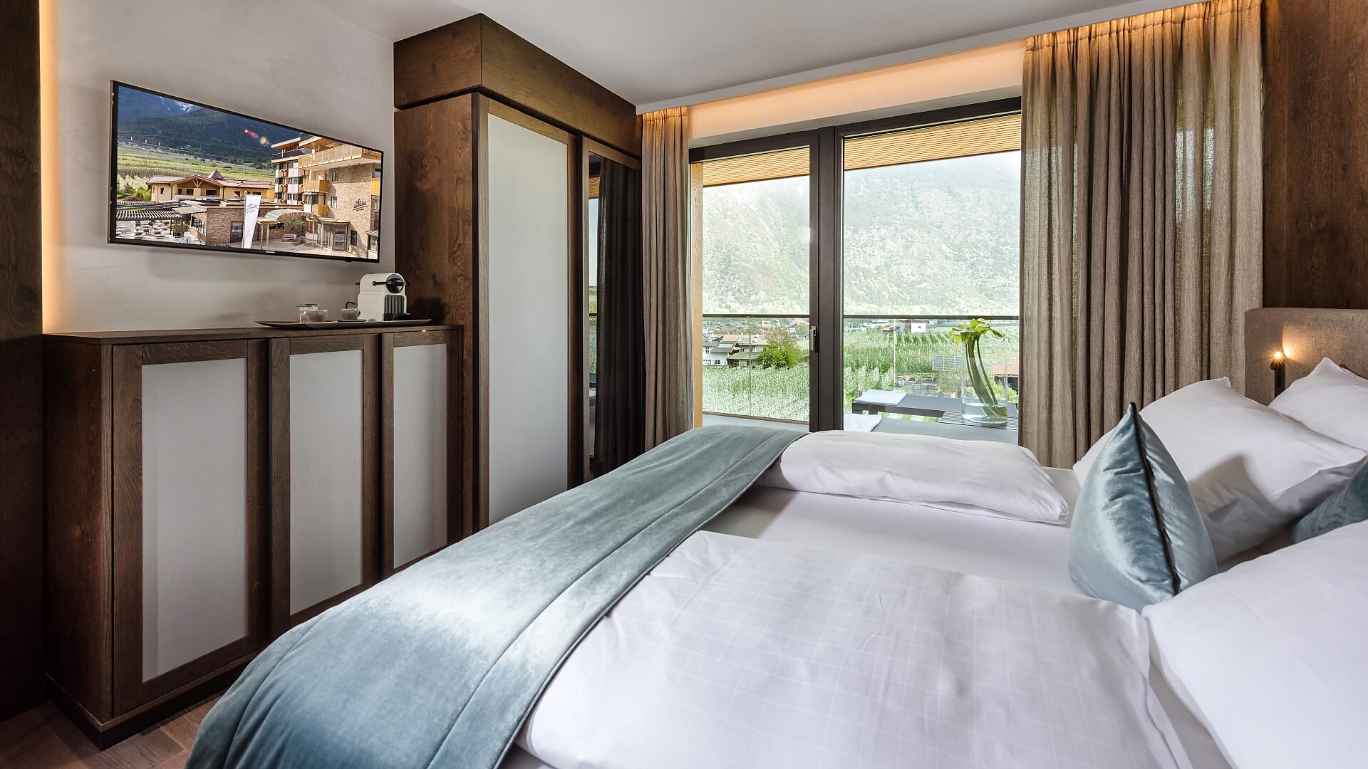 Camera doppia di 30 m² (balcone aggiuntivo di 10-15m²)Pavimento in legnoAria condizionataBalcone con lettino doppioVista su frutteti/montagneDay bed nel salottoBorsa wellness con accappatoio e asciugamani per tutto il soggiorno
