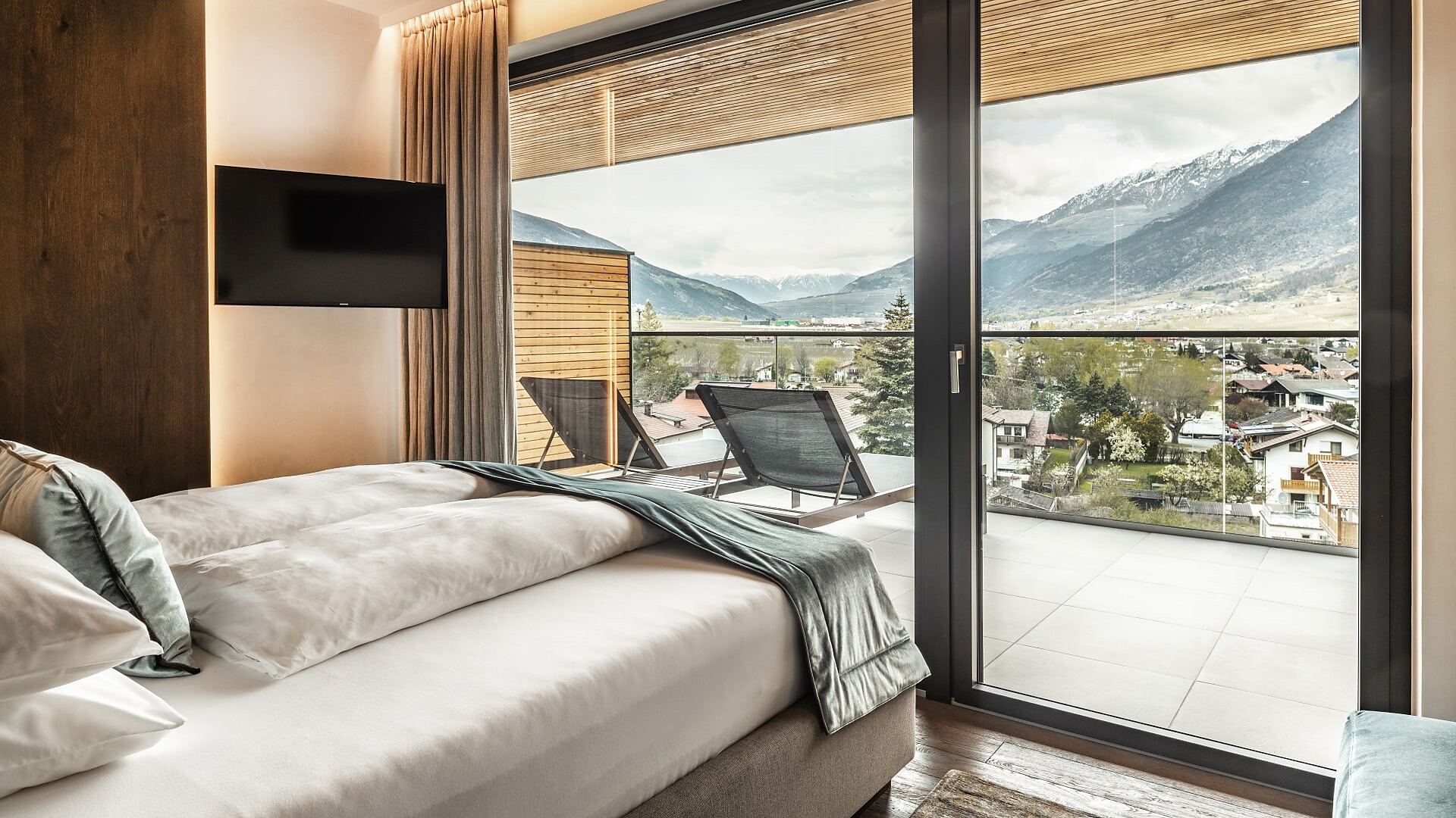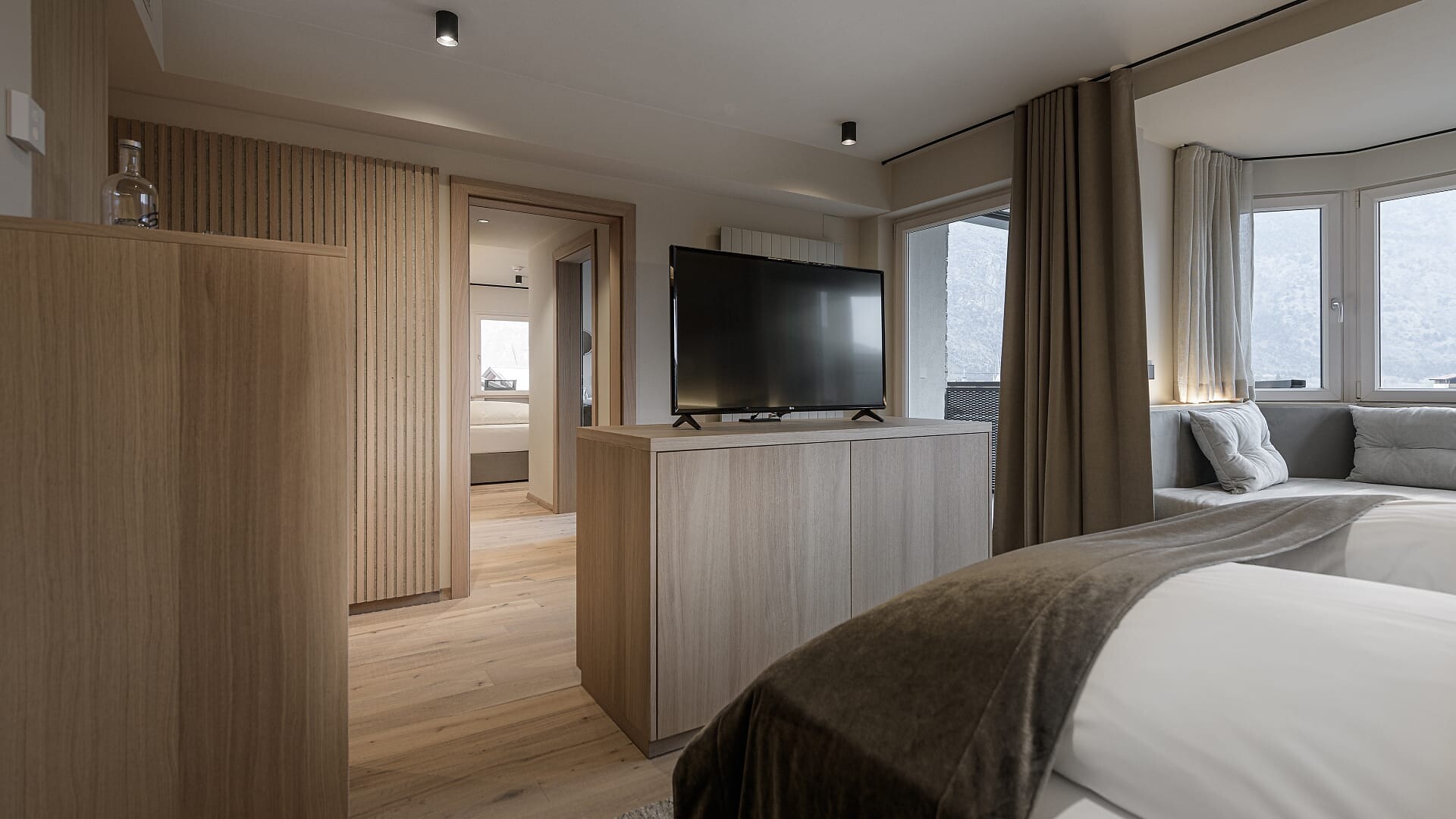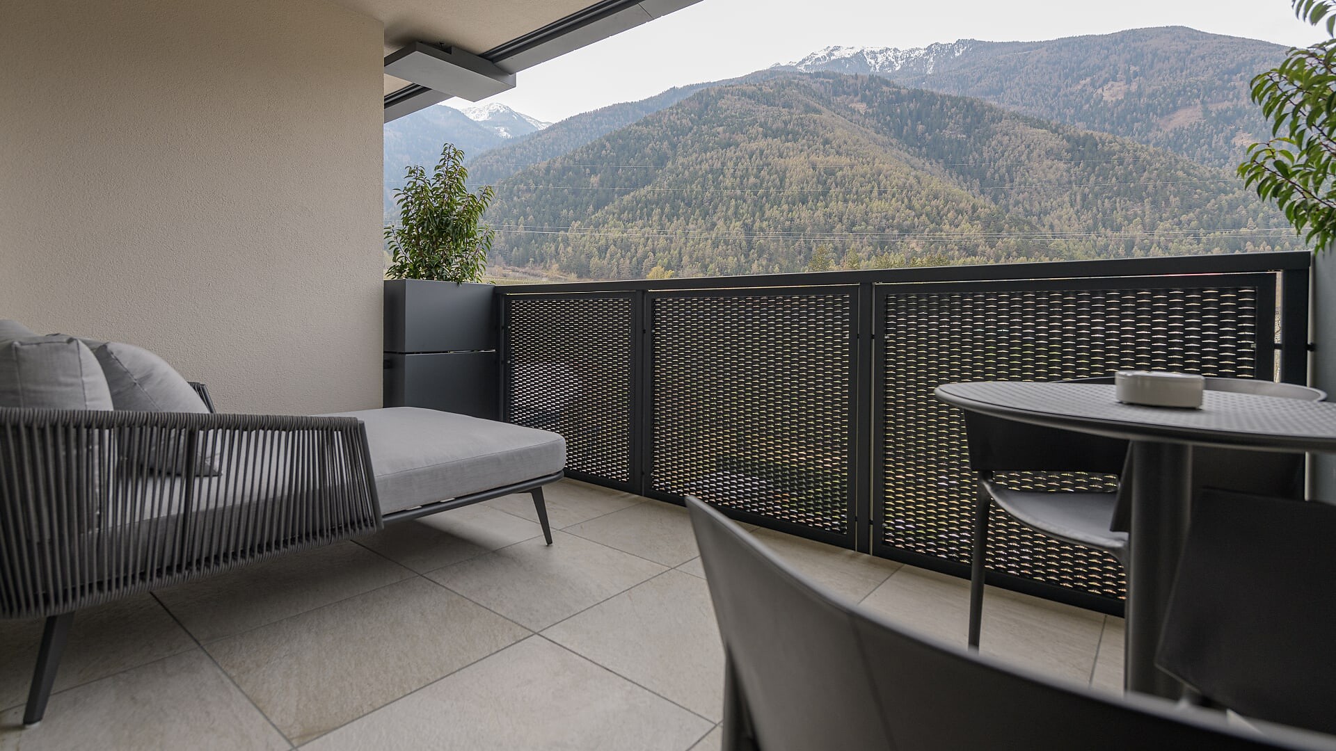 Suite con 41 m² (balcone aggiuntivo di 10m²)Pavimento in legnoAria condizionataVista verso le montagne/paeseBagno moderno con WC e bidet separatoBorsa wellness con accappatoio e asciugamani per tutto il soggiorno