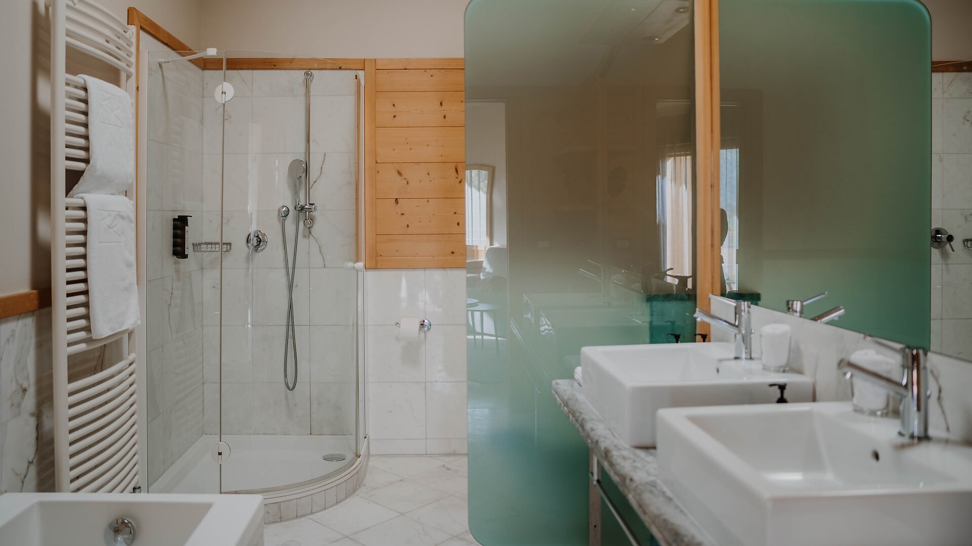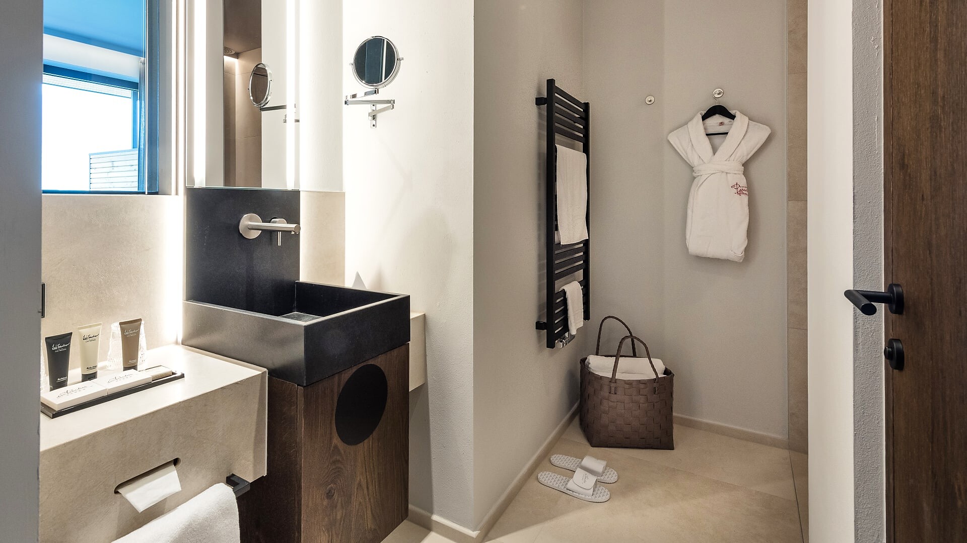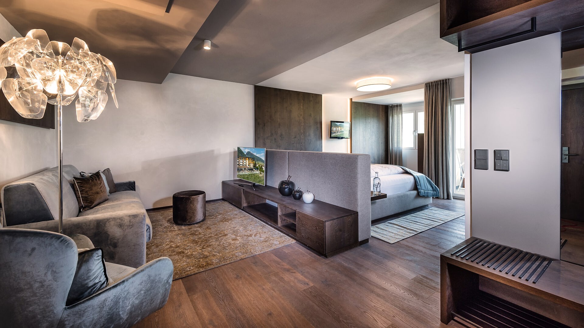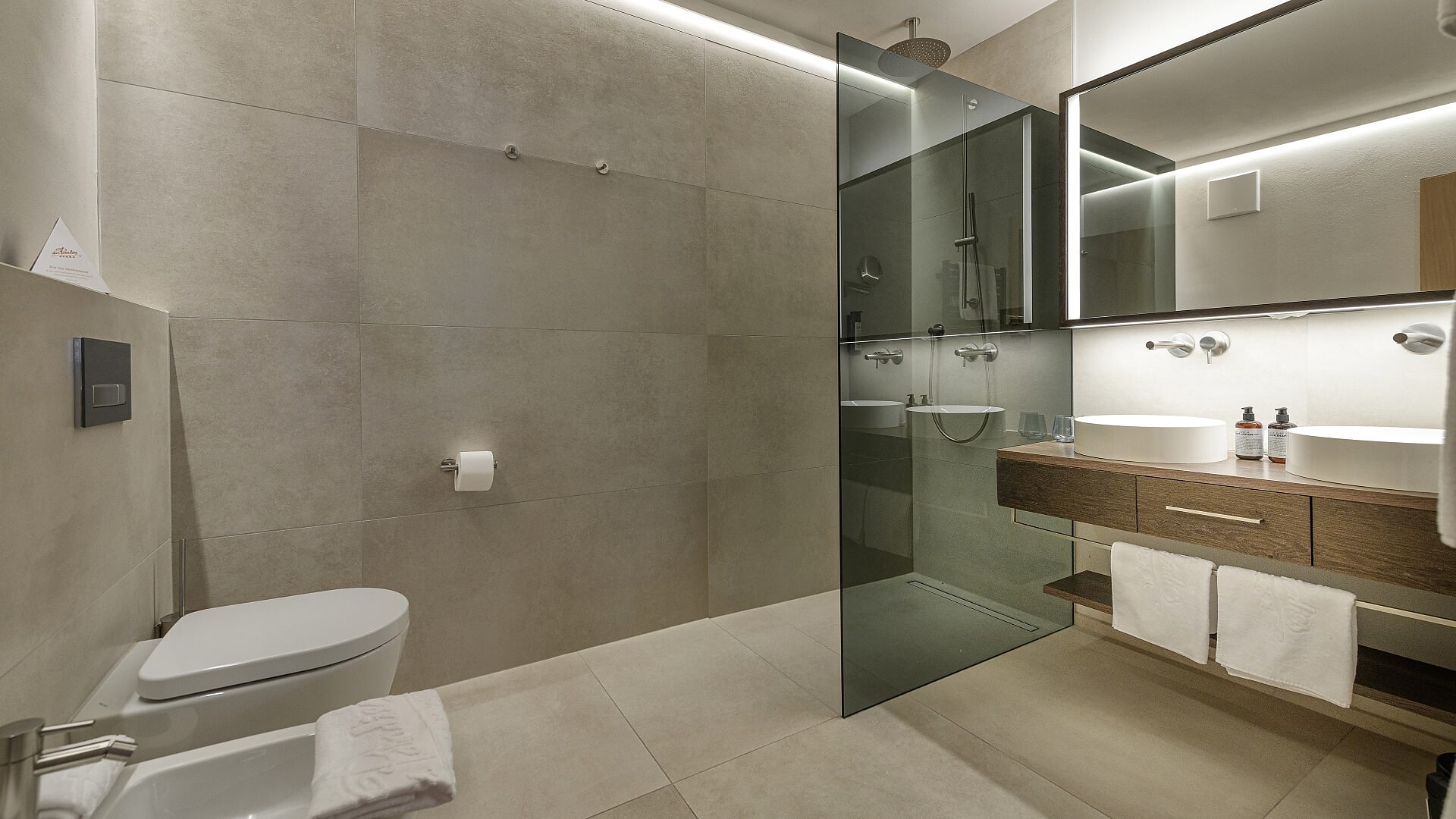Suite con 41 m² (balcone aggiuntivo di 10m²)Pavimento in legnoAria condizionataVista verso le montagne/paeseBagno moderno con WC e bidet separatoBorsa wellness con accappatoio e asciugamani per tutto il soggiorno