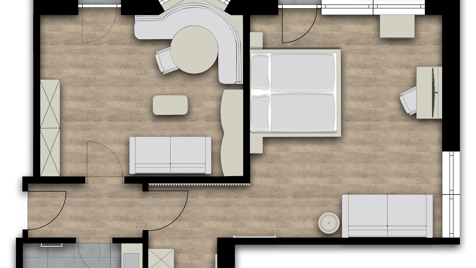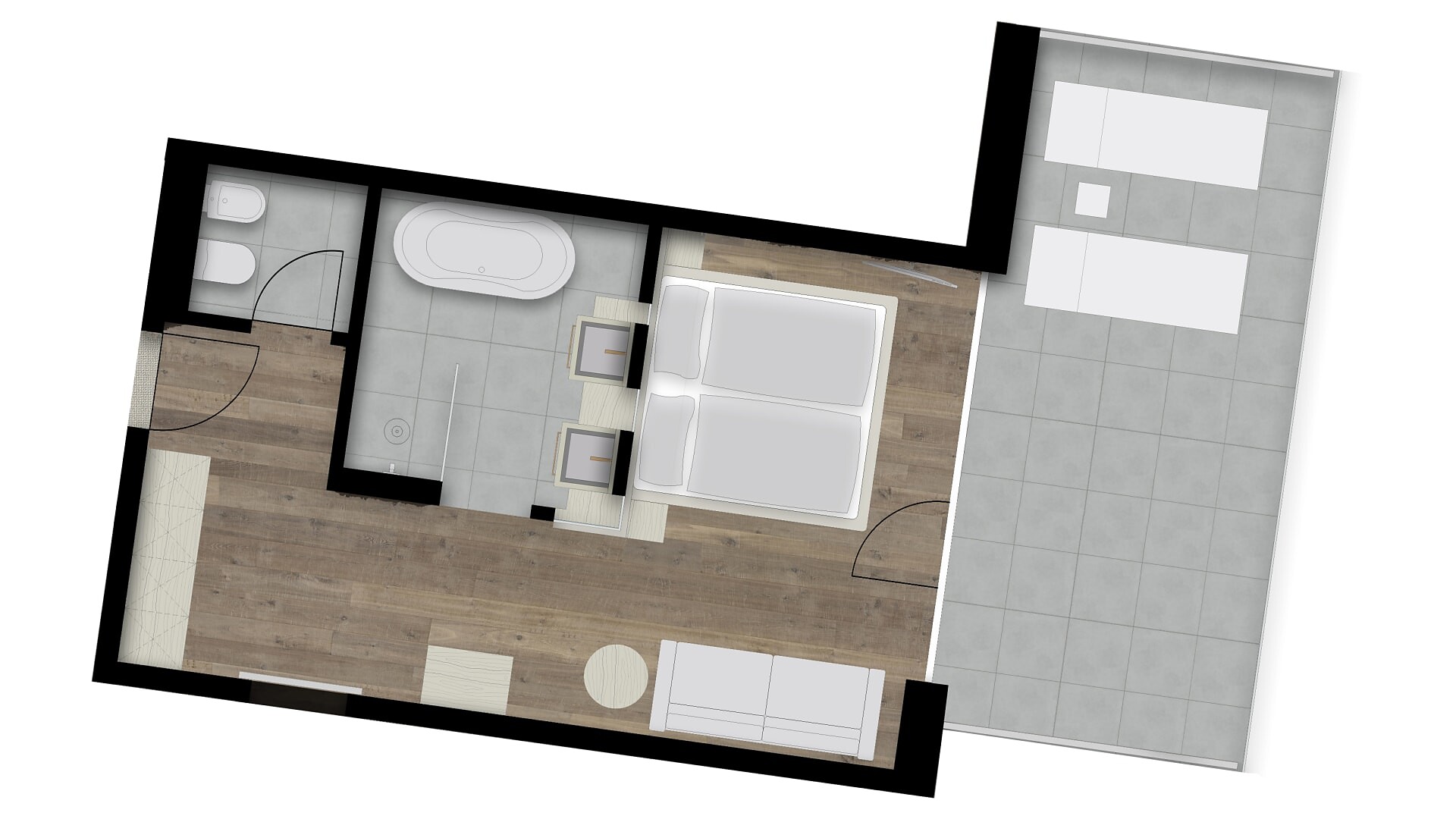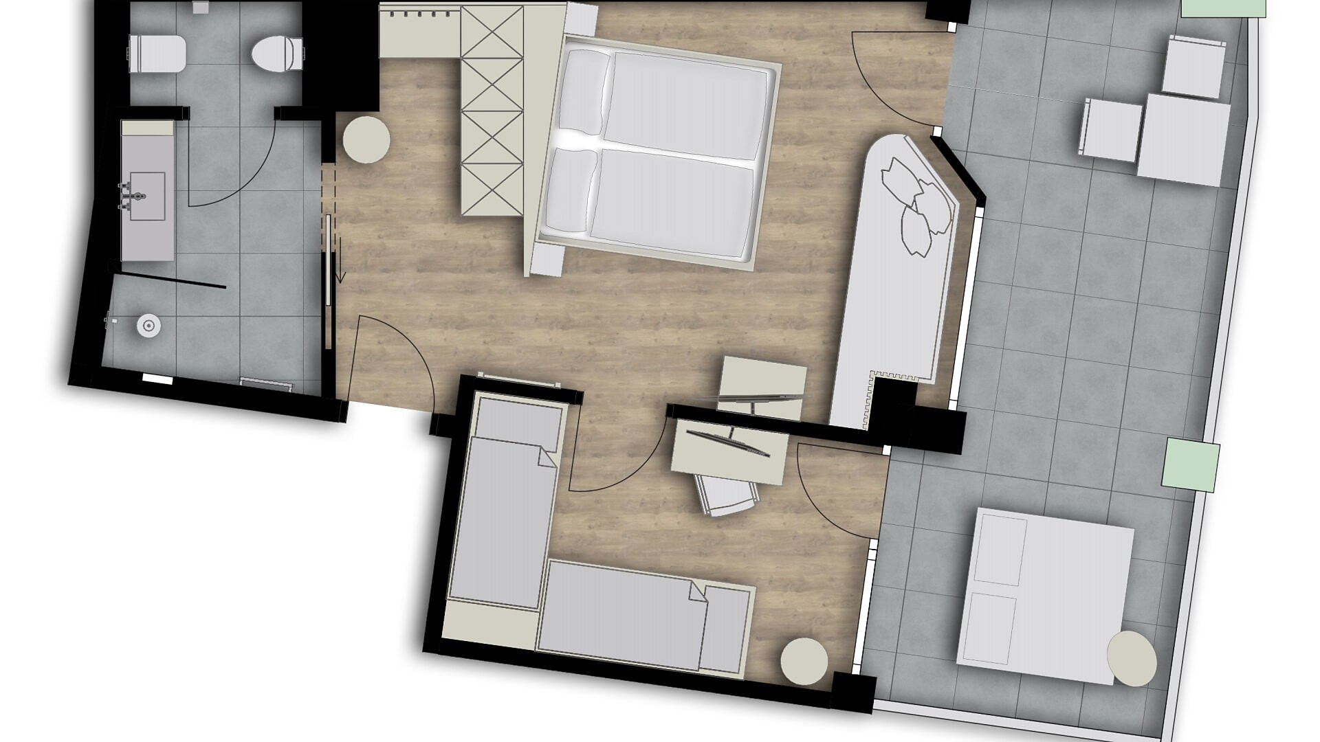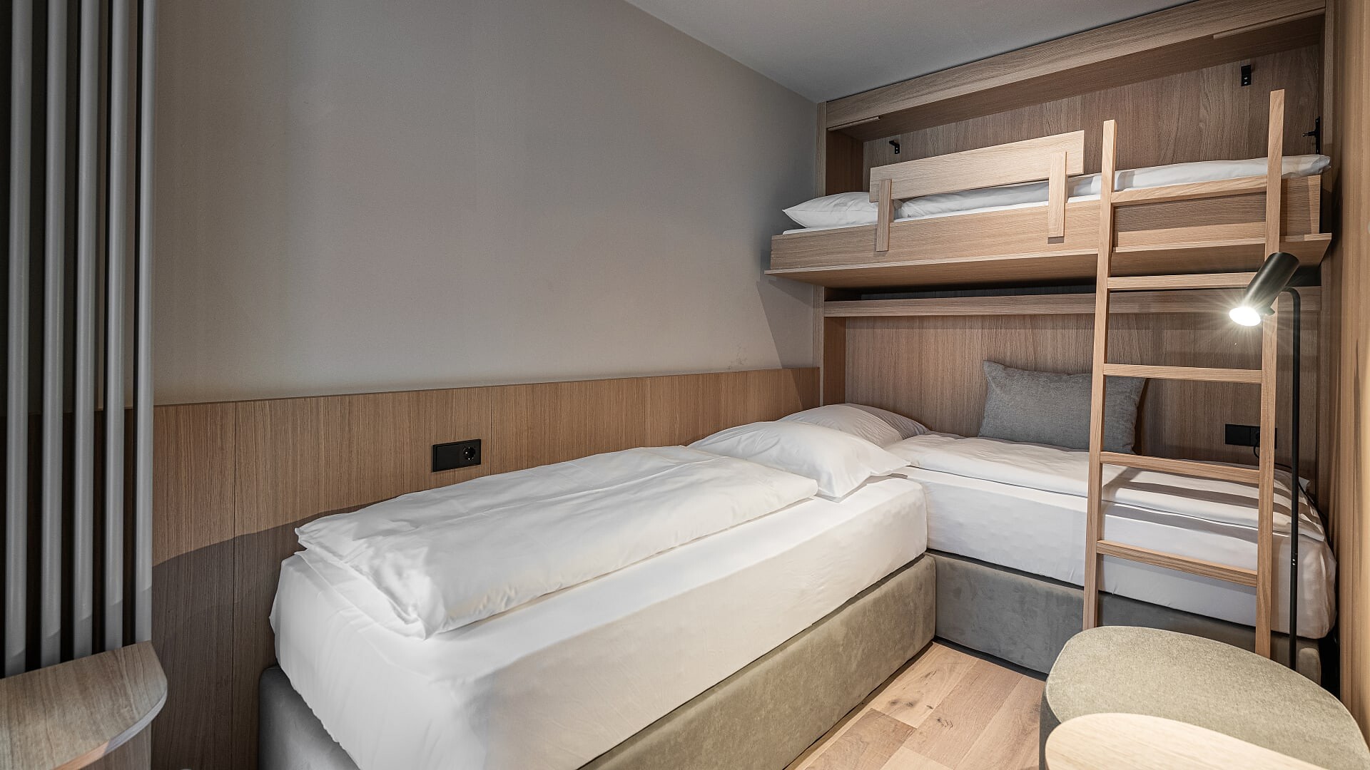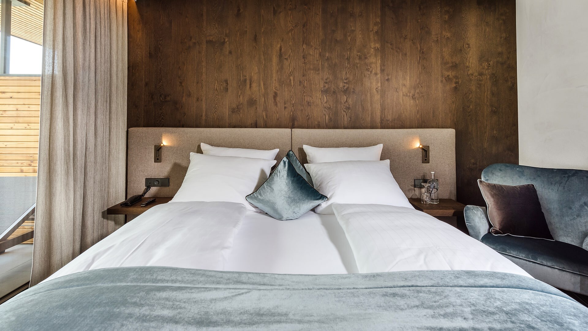 Camera doppia con 27 m² (balcone aggiuntivo di 10-15m²)Pregiati materiali naturaliPavimento di legnoAria condizionataVerso sud con vista sulla piscinaBagno moderno con WC separato, bidetBorsa wellness con accappatoio e asciugamani per l’intero soggiorno
