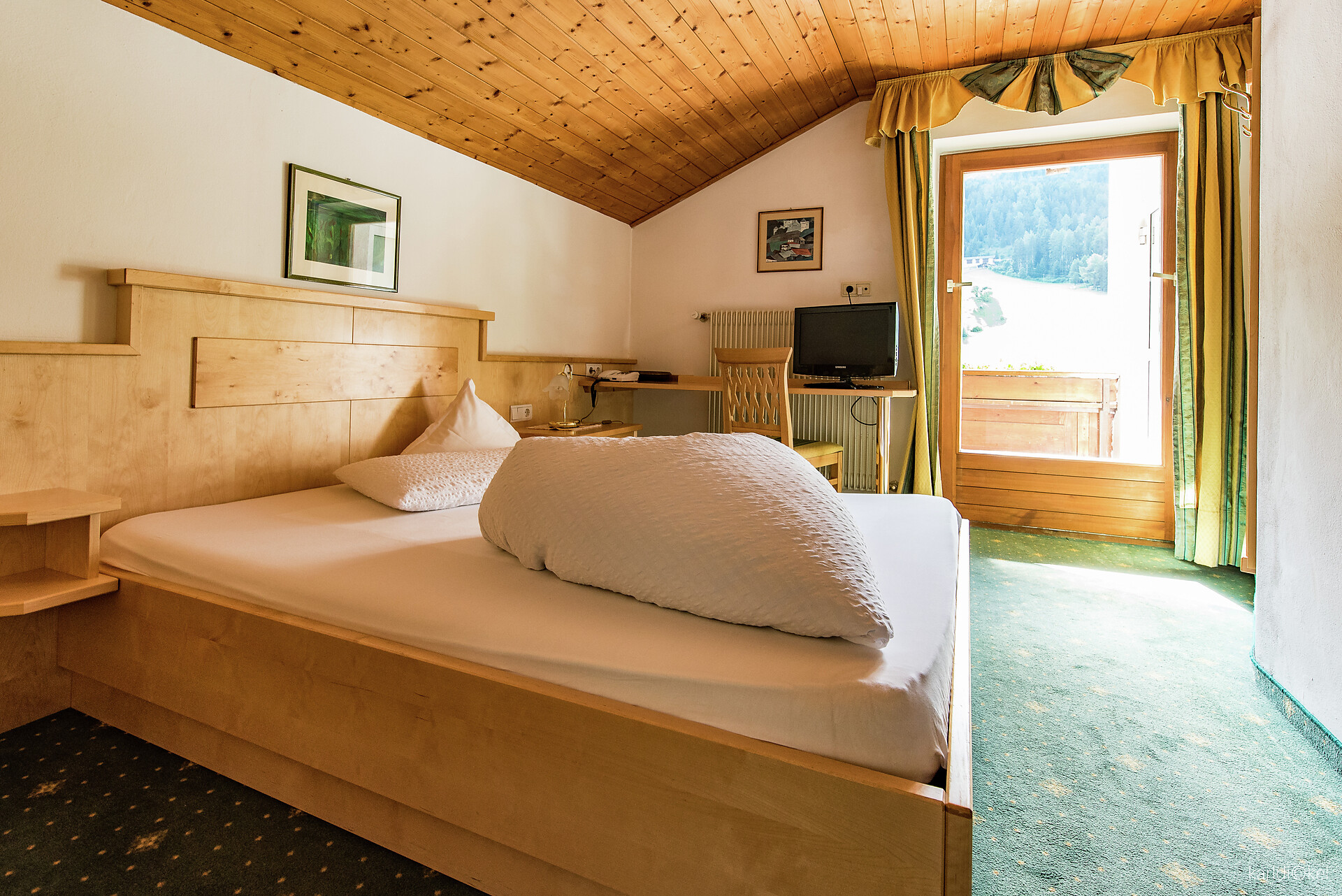 con balcone, situato nella parte alta del Hotel. Camera con bella vita sulla malga di S.Valentino, camera dotato di cassaforte, Lcd Tv, telefono, Wi-Fi gratuito bagno nuovo, con doccia, Wc, bidet, fon