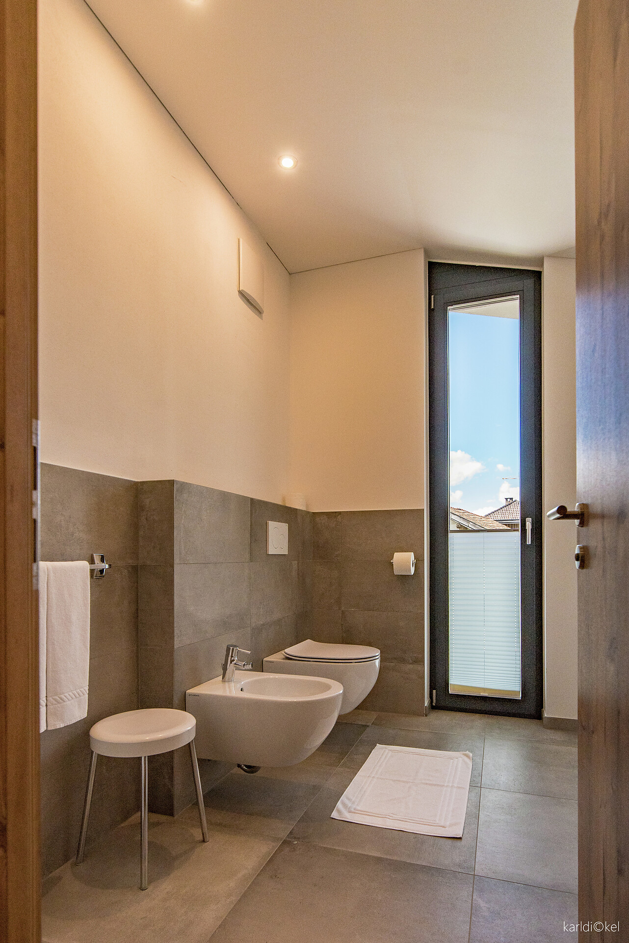 La camera al secondo o terzo piano ha un arredamento moderno- alpino con un spazioso balcone con vista sull'Ortles, arredato di un angolo di soggiorno e vetrate con una vista panoramica stupenda. Il bagno moderno con doccia, bidet, Wc, fon. La camera con Lcd Tv, telefono, cassaforte e Wi-Fi gratuito.