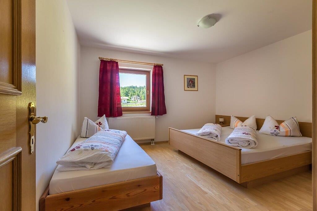 Una camera con due letti.