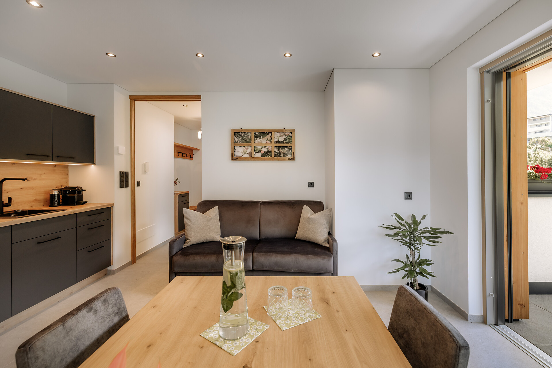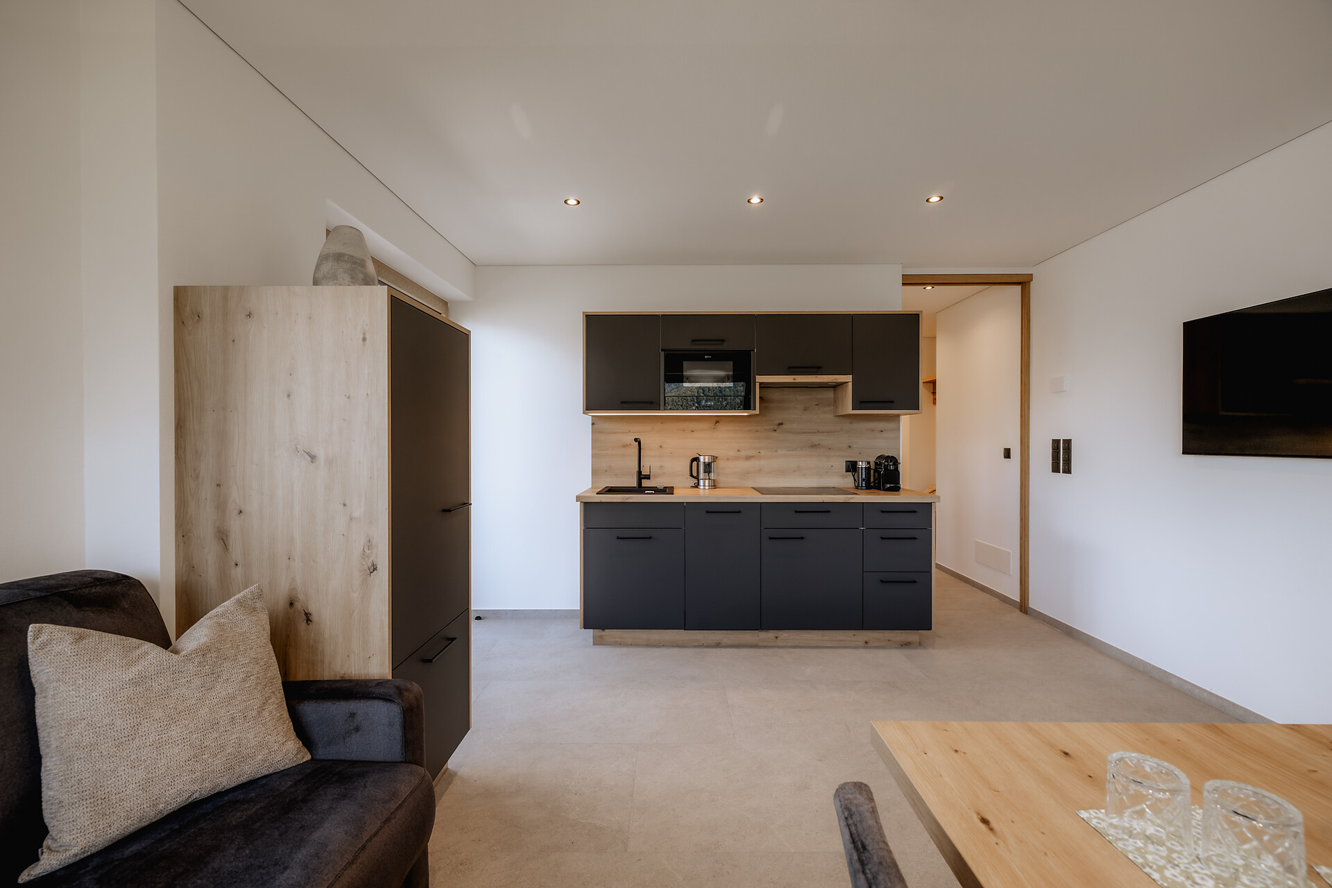 I nostri appartamenti sono grandi 40m² e possono ospitare 2-4 persone. Gli appartamenti sono composti da una cucina-soggiorno con divano letto, un bagno con doccia, WC, un corridoio, riscaldamento a pavimento, una cassaforte e WiFi gratuito. Nelle cuci
