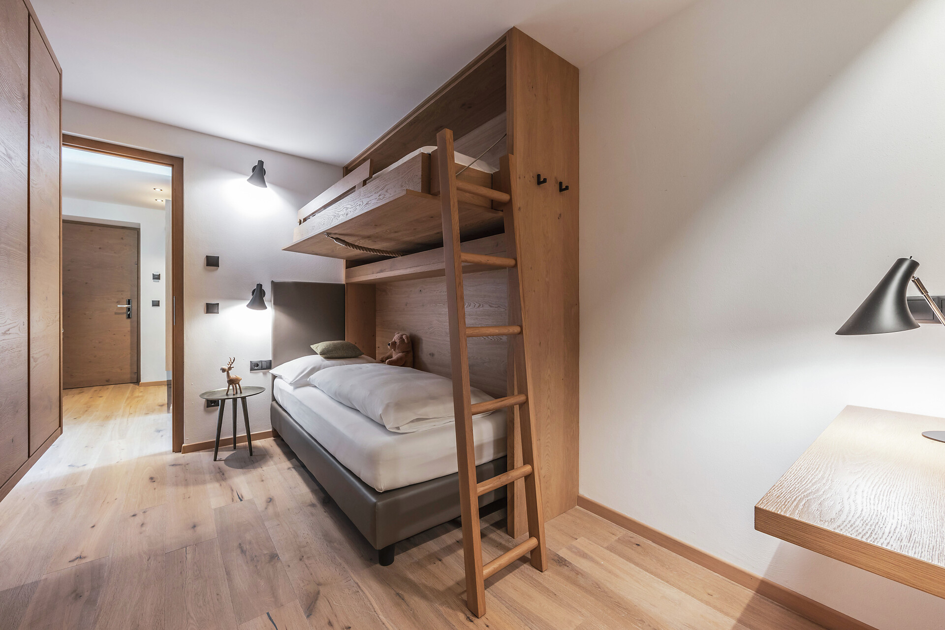 Massimo comfort abitativo, individualità e terrazza panoramica sull’Ortles caratterizzano questa splendida soluzione situata nella dépendance, direttamente vicino il nostro maso, a soli 50 m dalla struttura principale. Dispone di una zona giorno con angolo cottura, una camera da letto ed è presente anche una cameretta con letto matrimoniale.