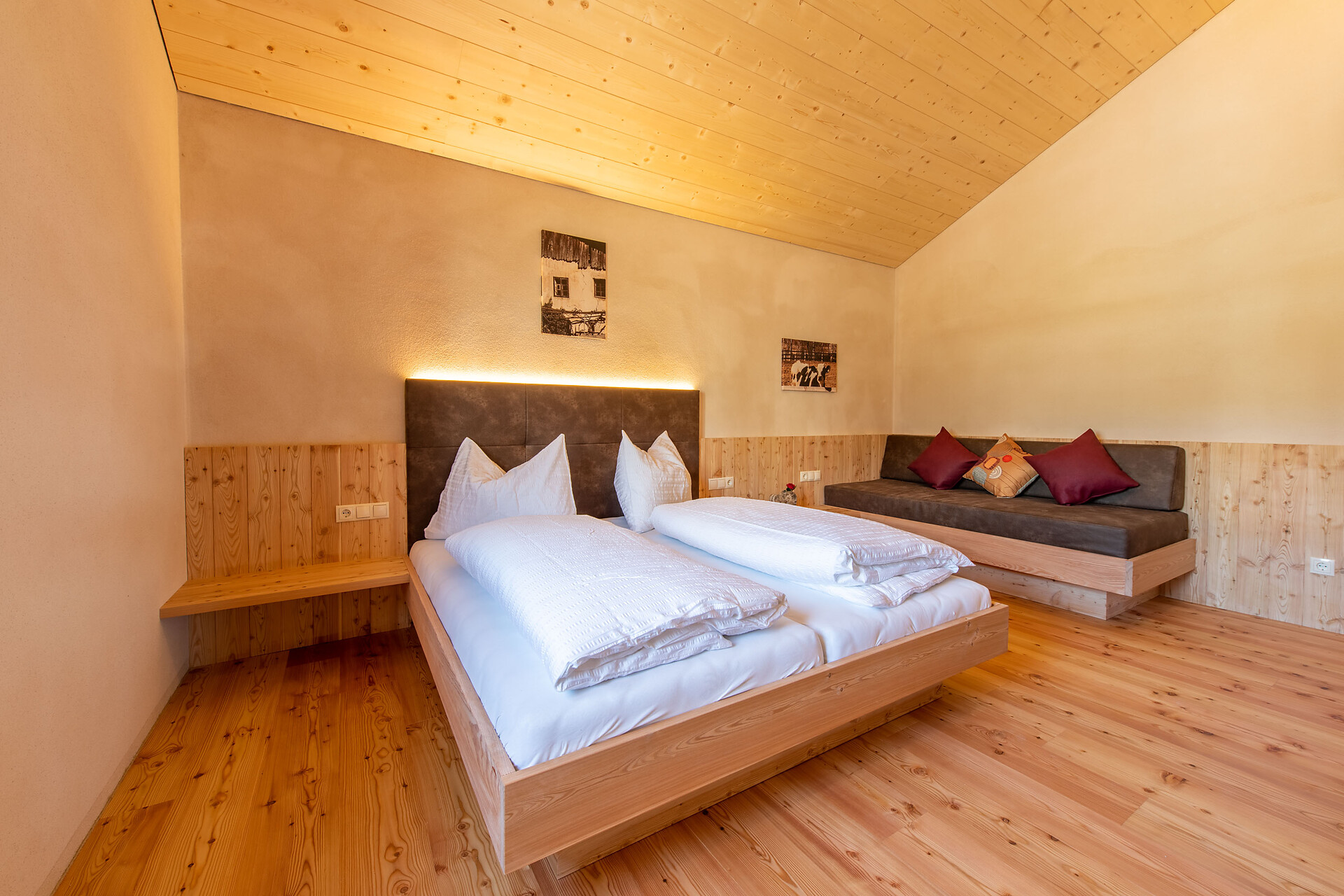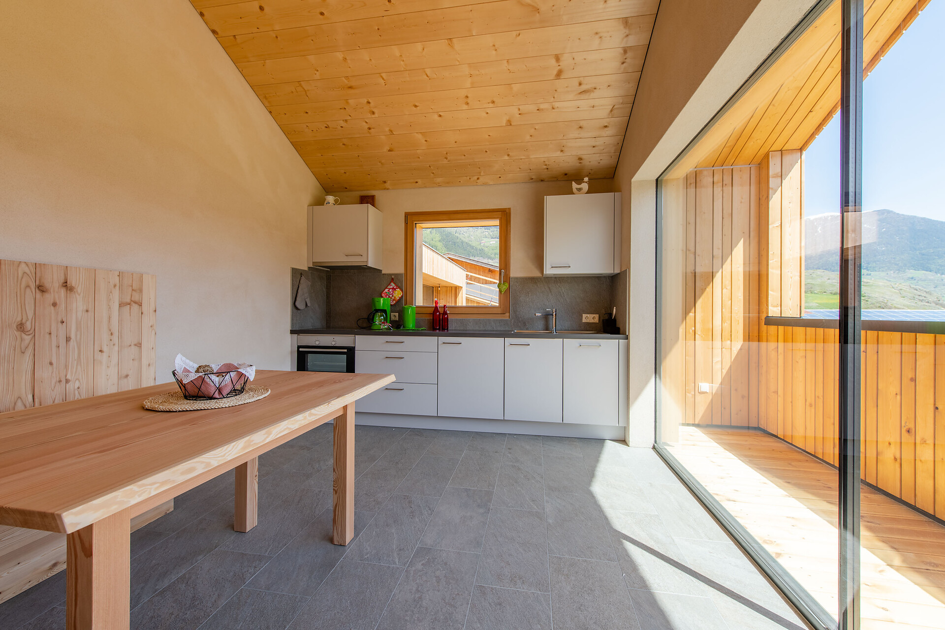 abbiamo costruito tre appartamenti confortevoli e arredati con amore nel 2019, con terrazza o balcone, dove Voi, da due a sette persone, potete trascorrere giorni di vacanze spensierate in ogni stagione. I nostri appartamenti di 65 m2 dispongono di due camere da letto, una cucina completamente attrezzata, un soggiorno con una favolosa vista sulle montagne e un bagno con vasca, doccia e servizi igienici. Può essere altresì utilizzata una sala di ritrovo con giochi e anche una “biblioteca della casa“. I nostri piccoli ospiti all’aperto possono…