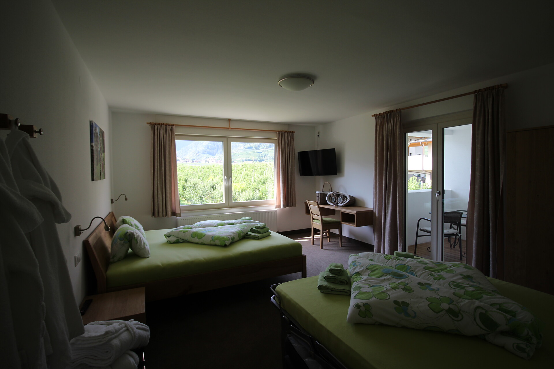 Letto matrimoniale, Divano letto, Divano letto matrimoniale, Balcone, Giardino, Biancheria da letto disponibile, Cassaforte, Appartamento non fumatori, Cucina separata, Macchina da caffè, Lavastoviglie, Forno a microonde, Stoviglie, Piano cottura, Doccia / bagno, 2 oppure più bagni, Fon, Accappatoio, Asciugamani, TV, TV satellitare/via cavo, WLAN, Pulizia finale inclusa, Edificio principale, Vista panoramica, Lato sud