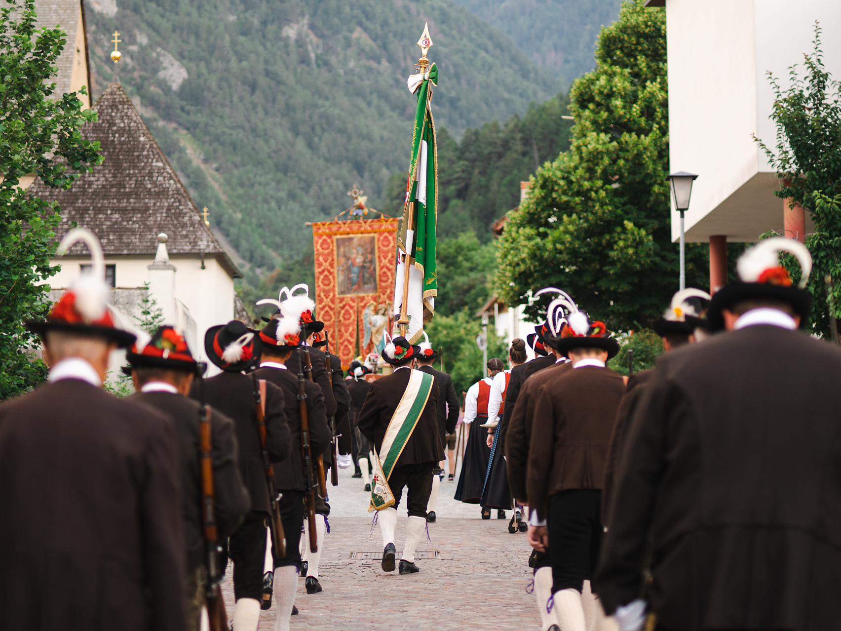 Processione tradizionale attraverso il villaggio di Morter come parte della festa del Sacro Cuore.