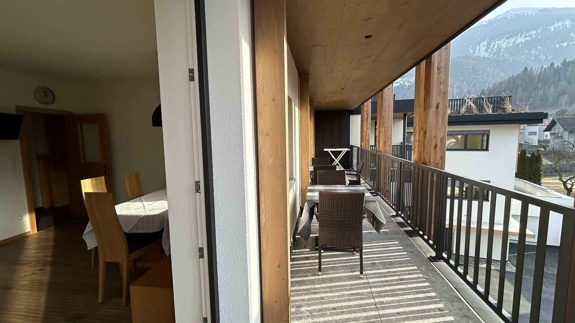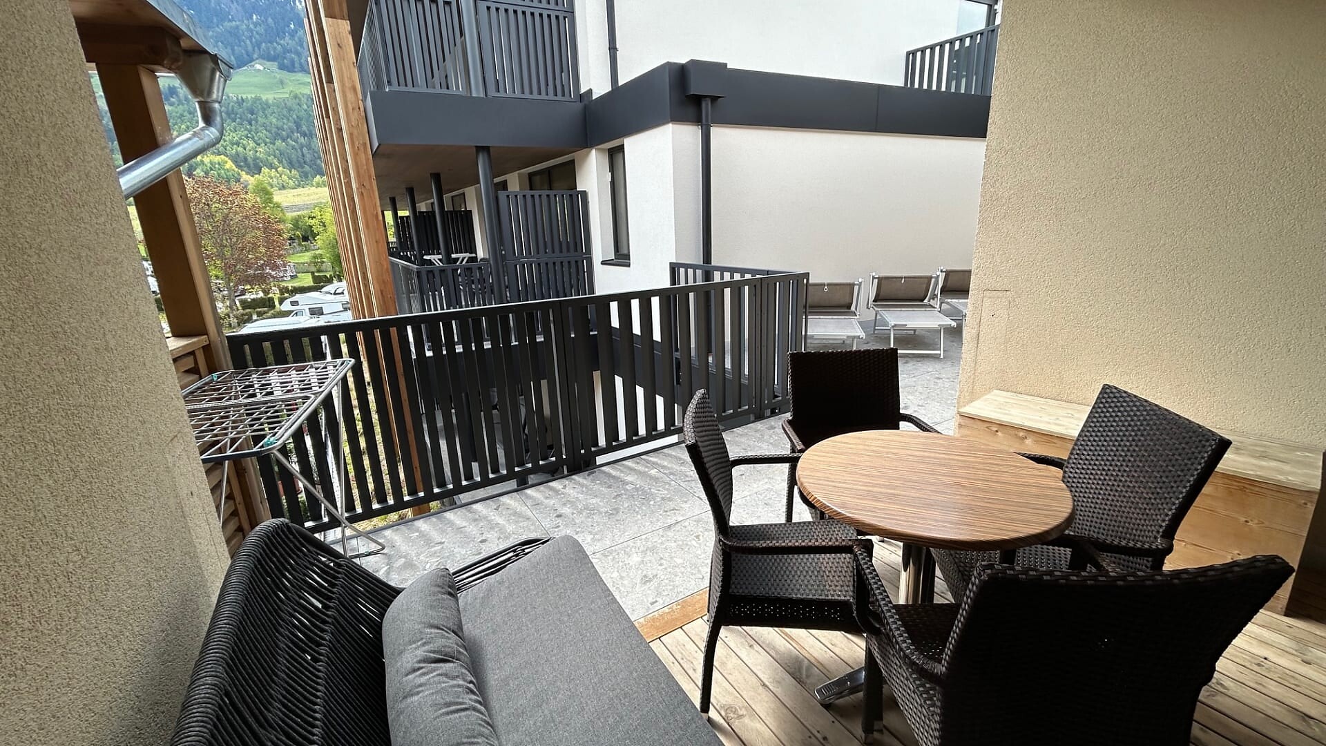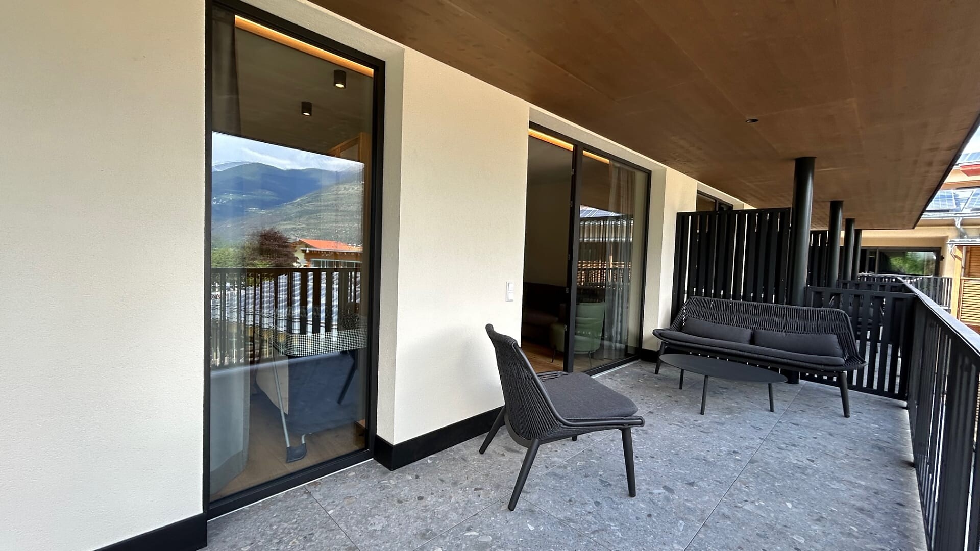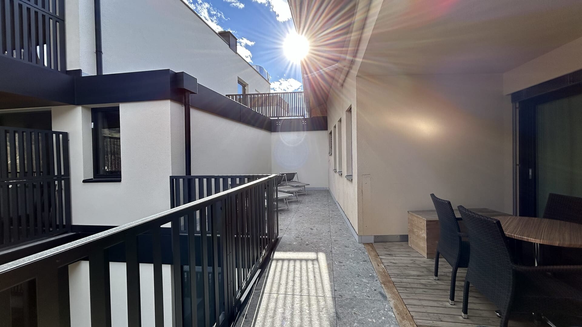 Ampio balcone-terrazza esposto a sud con sauna a infrarossi associata