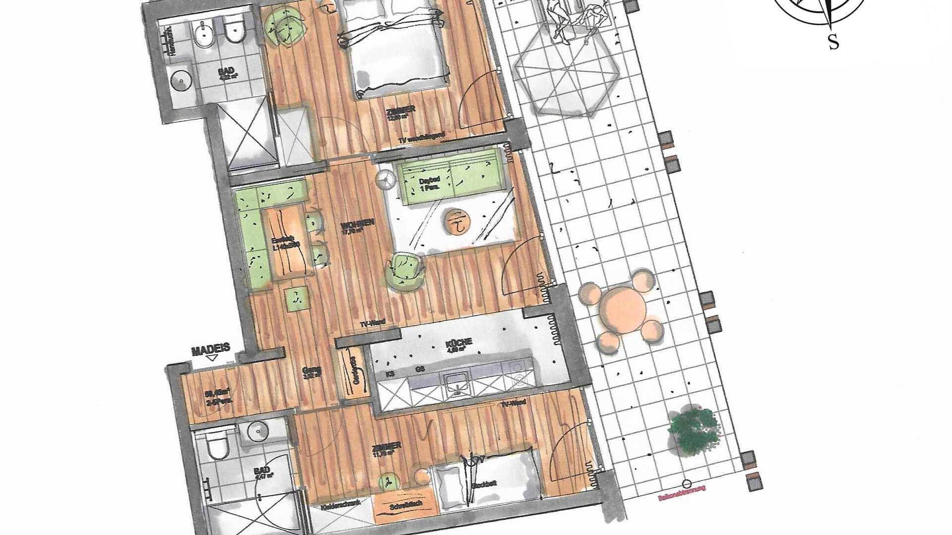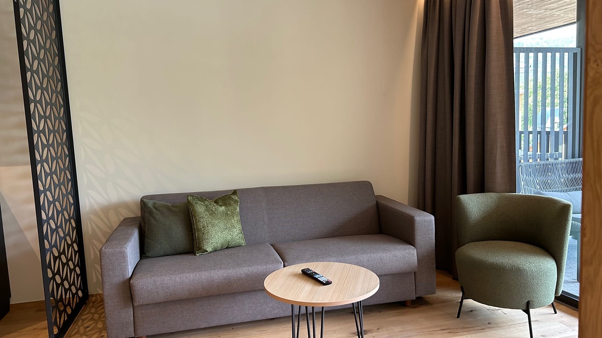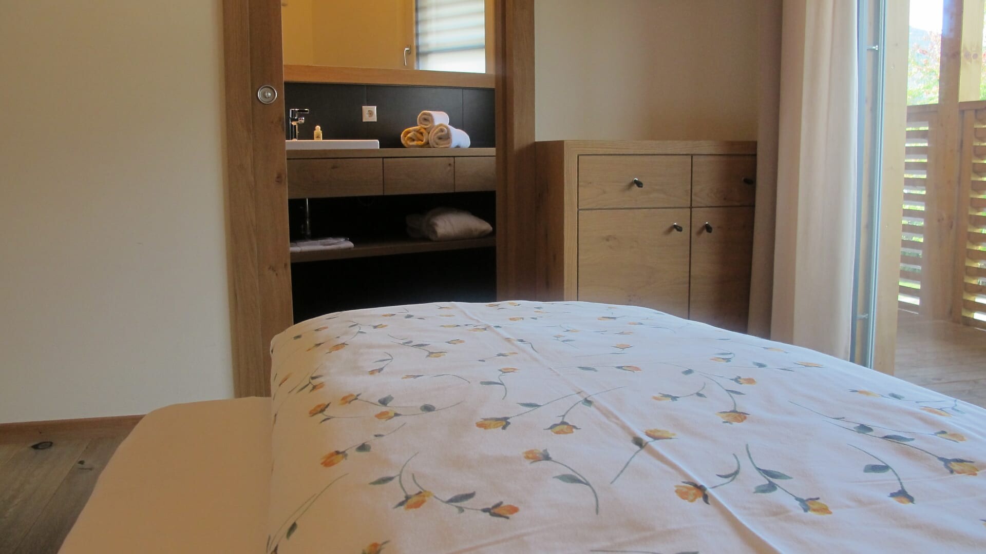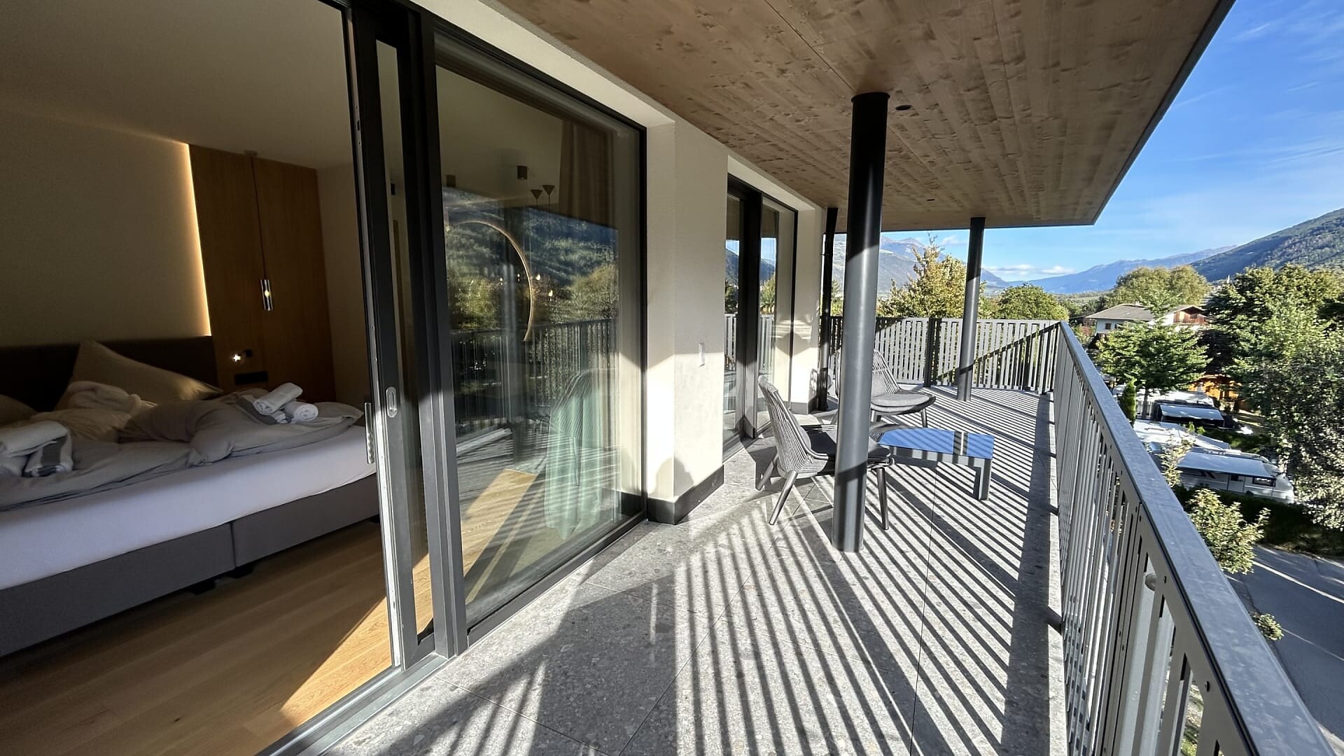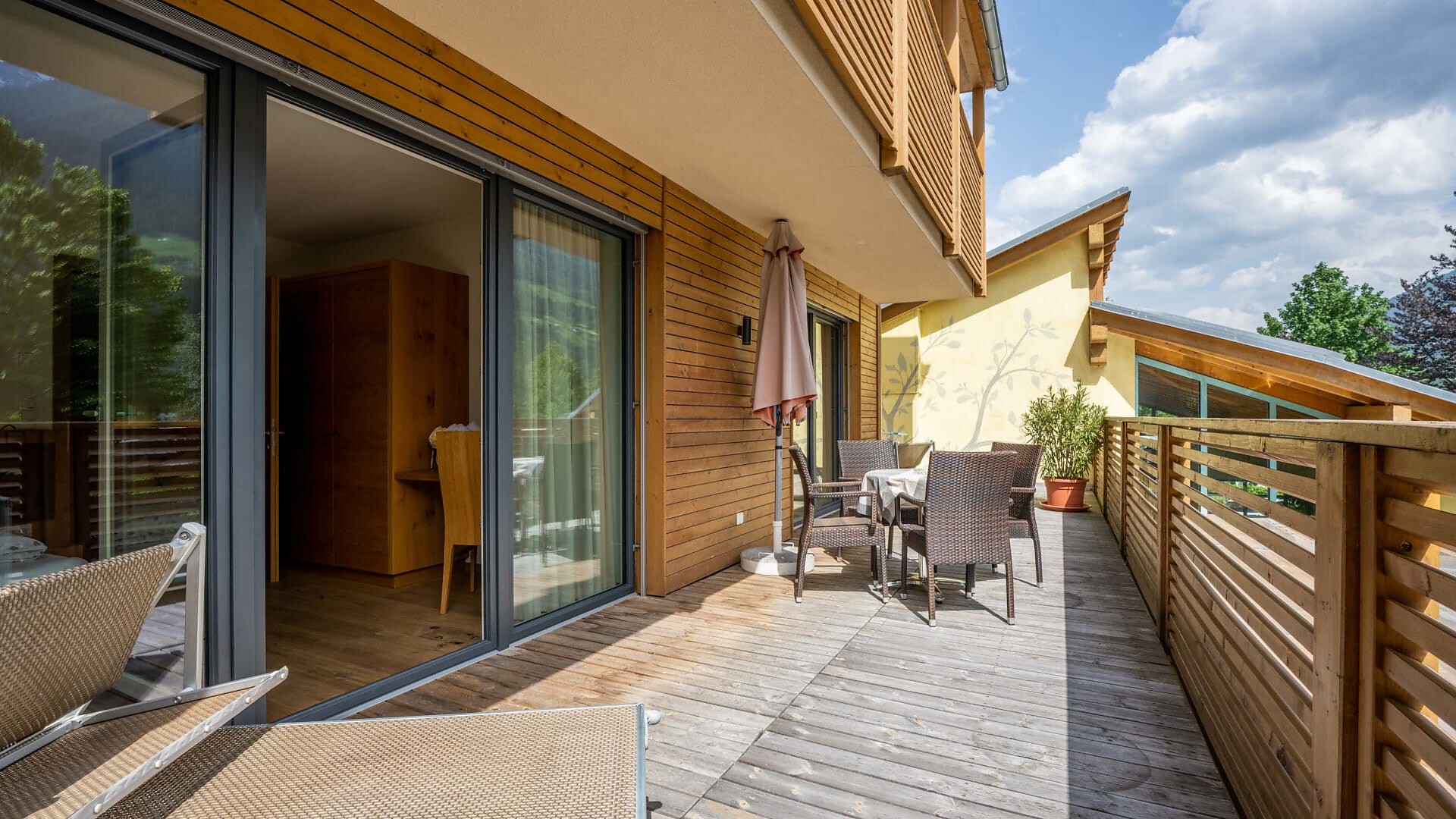 Ampio balcone-terrazza esposto a sud con sauna a infrarossi associata