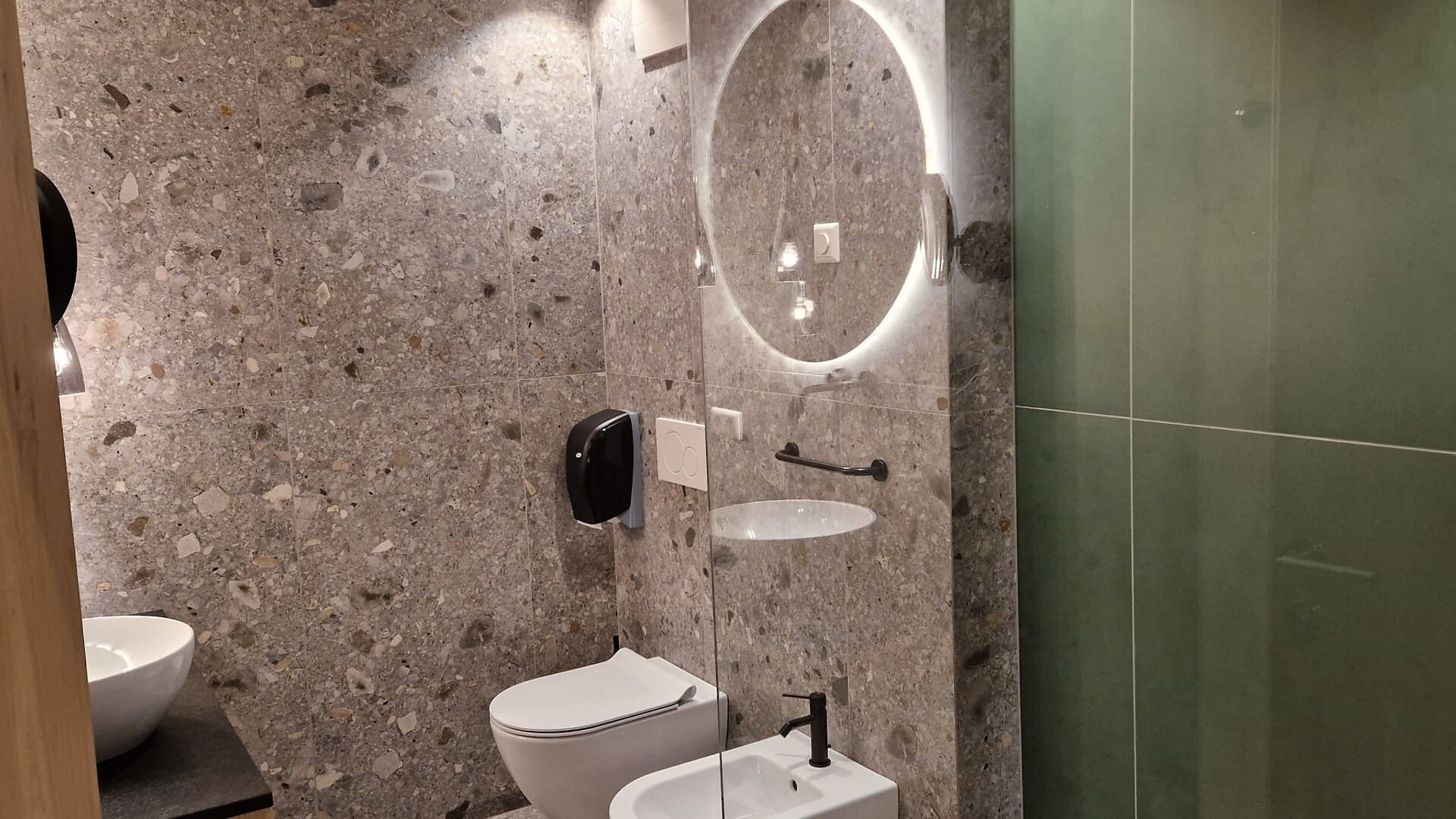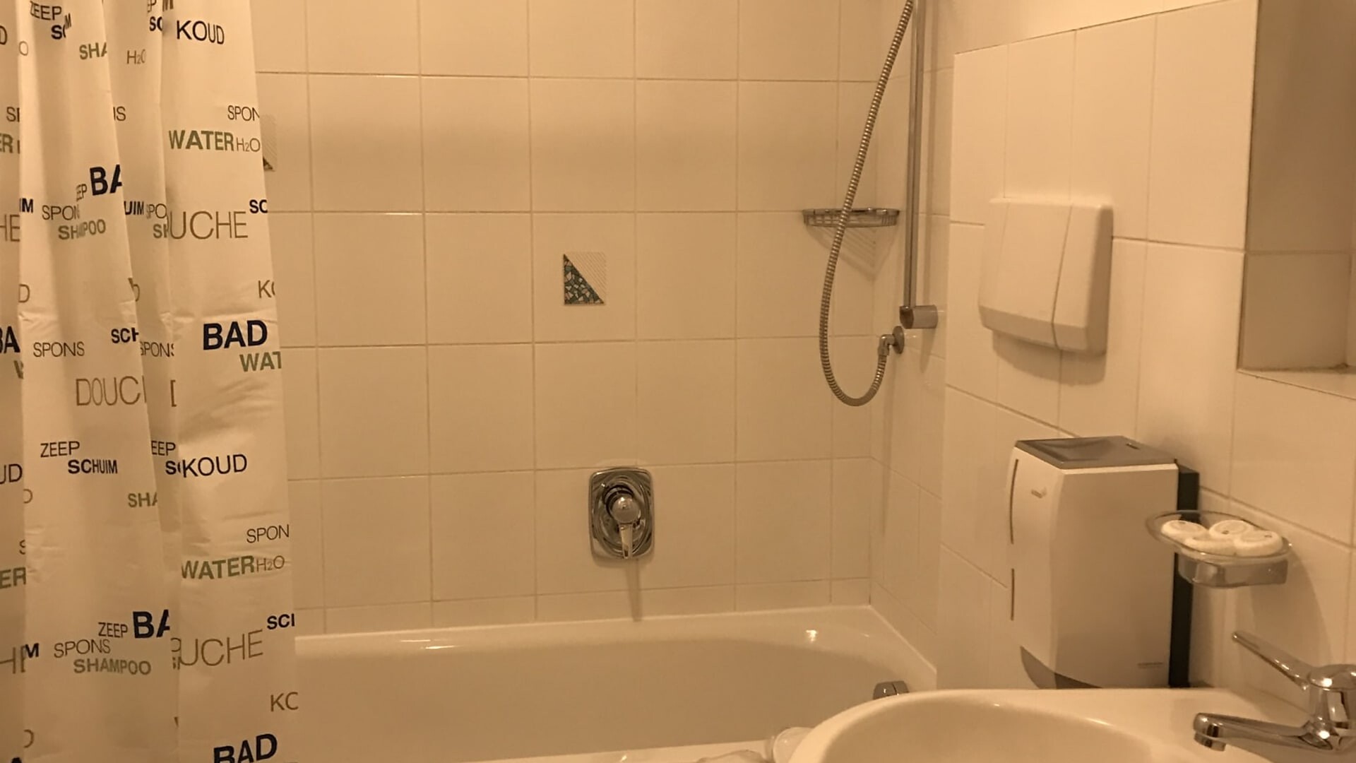 bagno con doccia, lavabo, WC