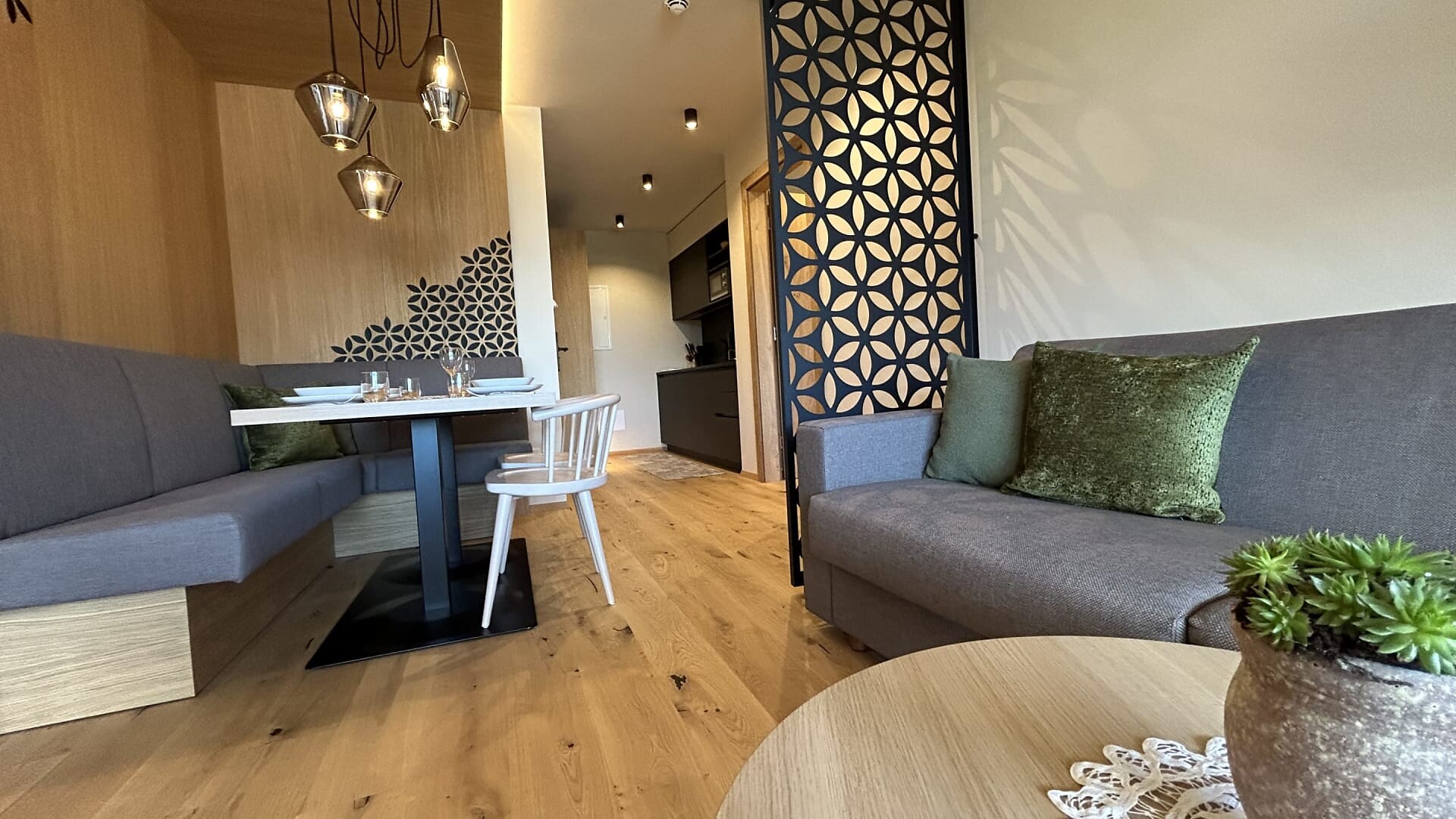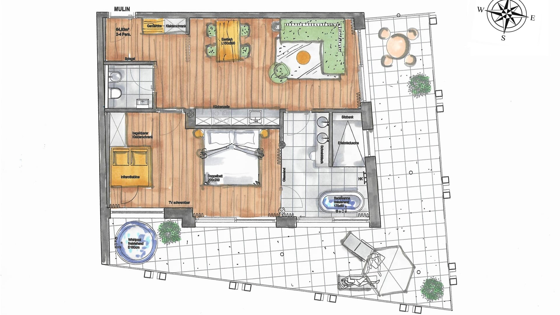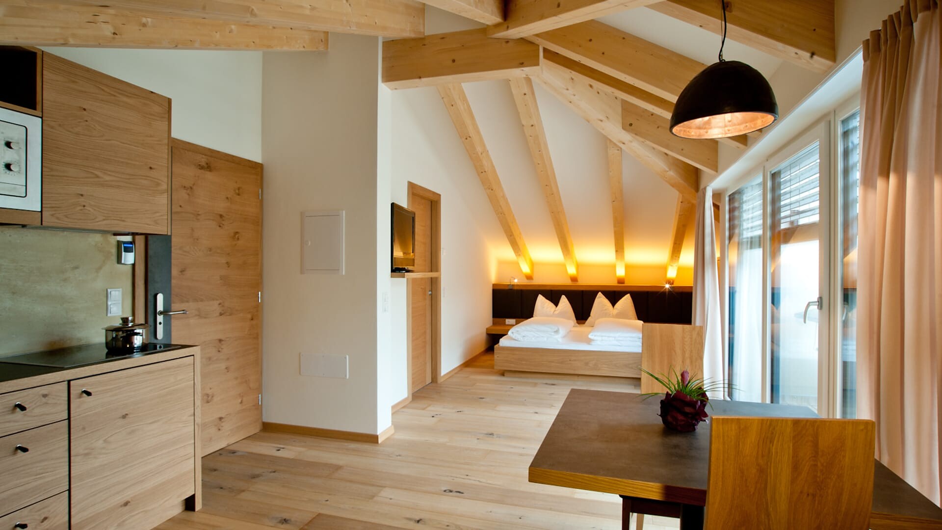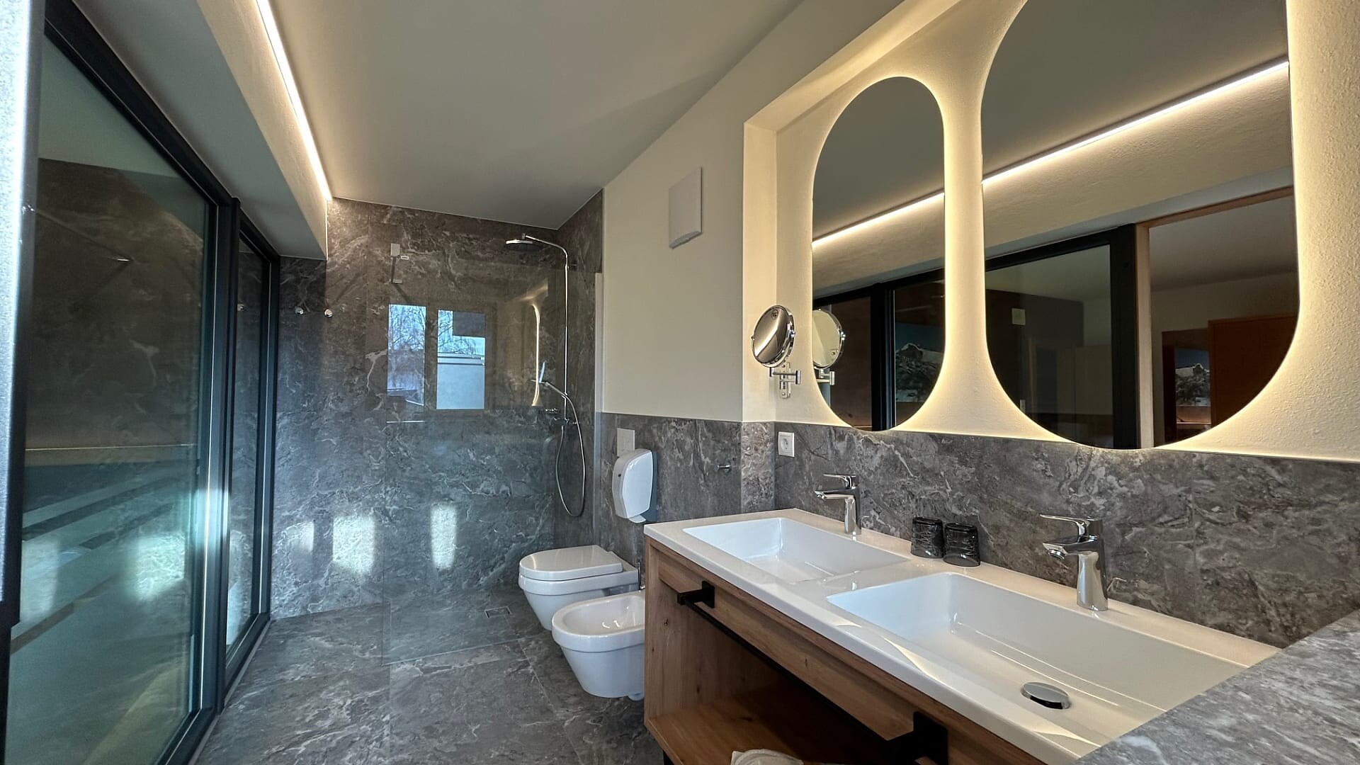 Godetevi il rilassante studio panoramico con terrazza solarium di 45 m² e l'esclusiva sauna a infrarossi al 3° piano.