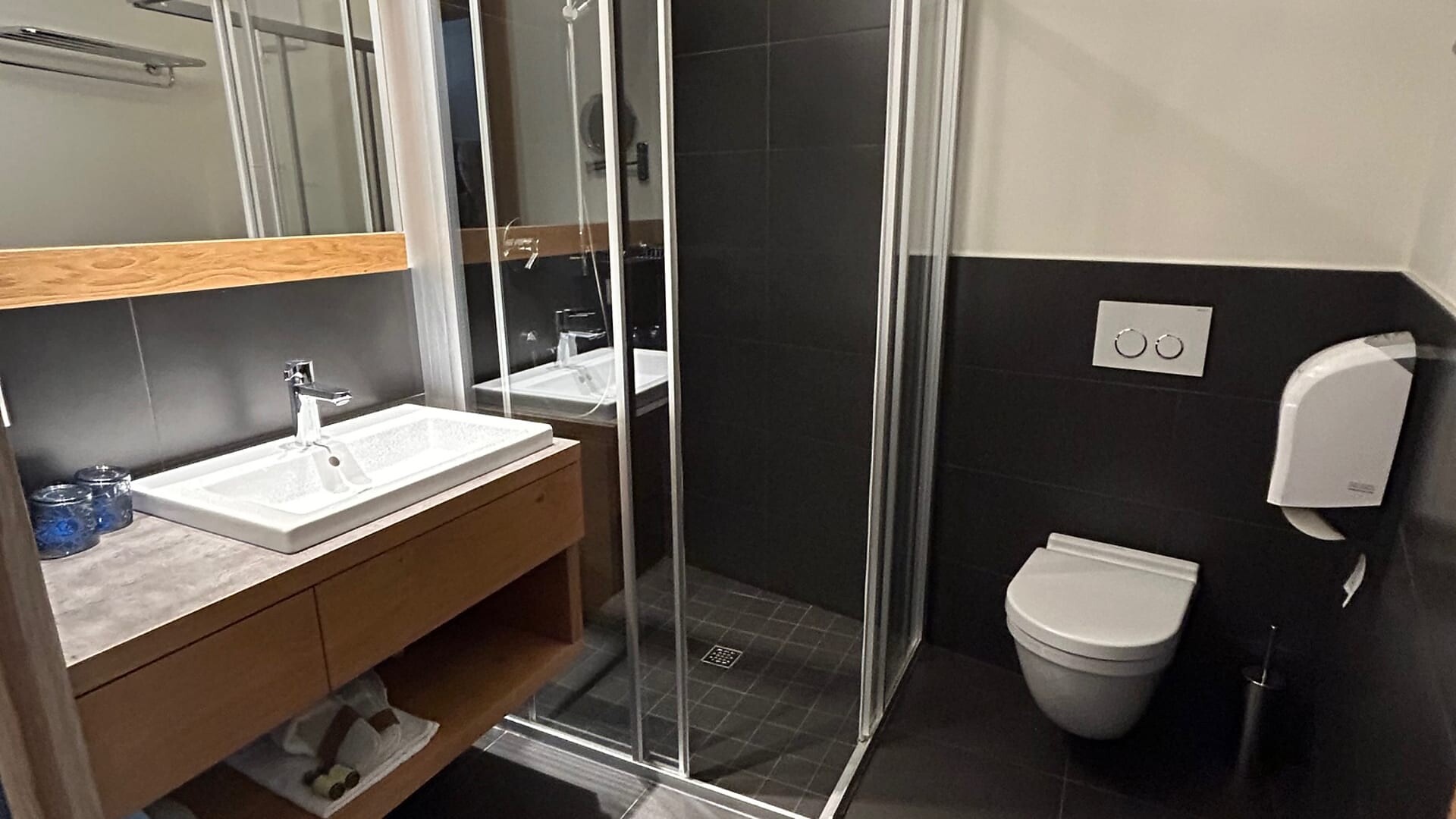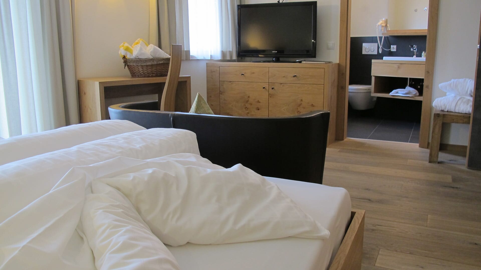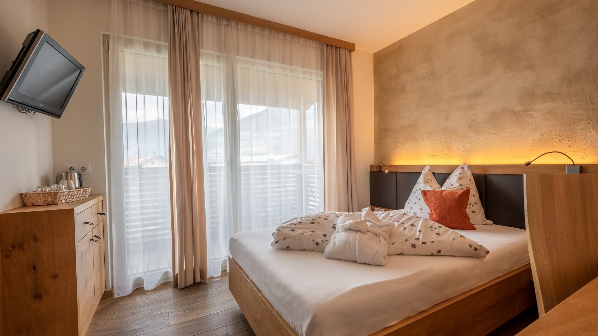 TV a schermo piatto con collegamento satellitare, WLAN gratuita, cassaforte