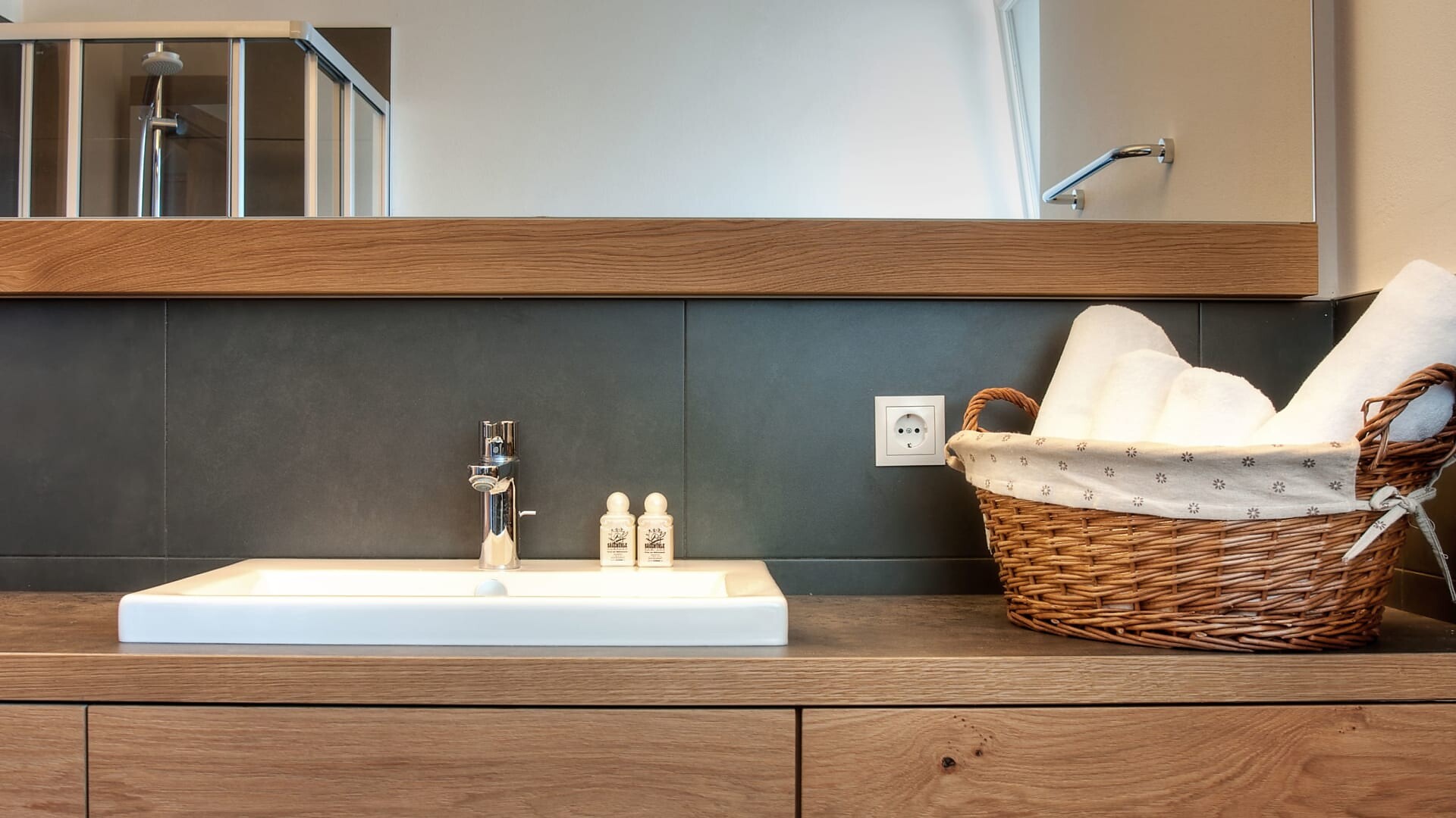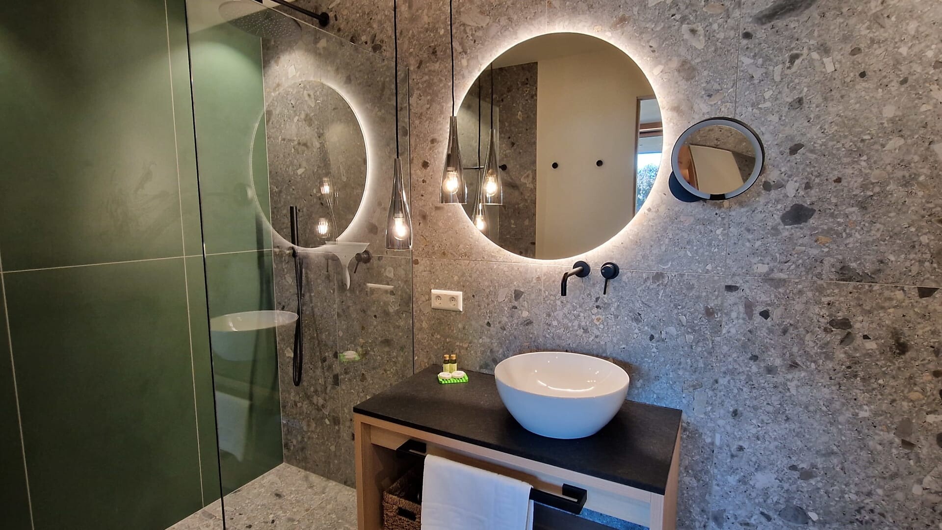 prodotti da bagno di alta qualità, specchio per il trucco e asciugacapelli