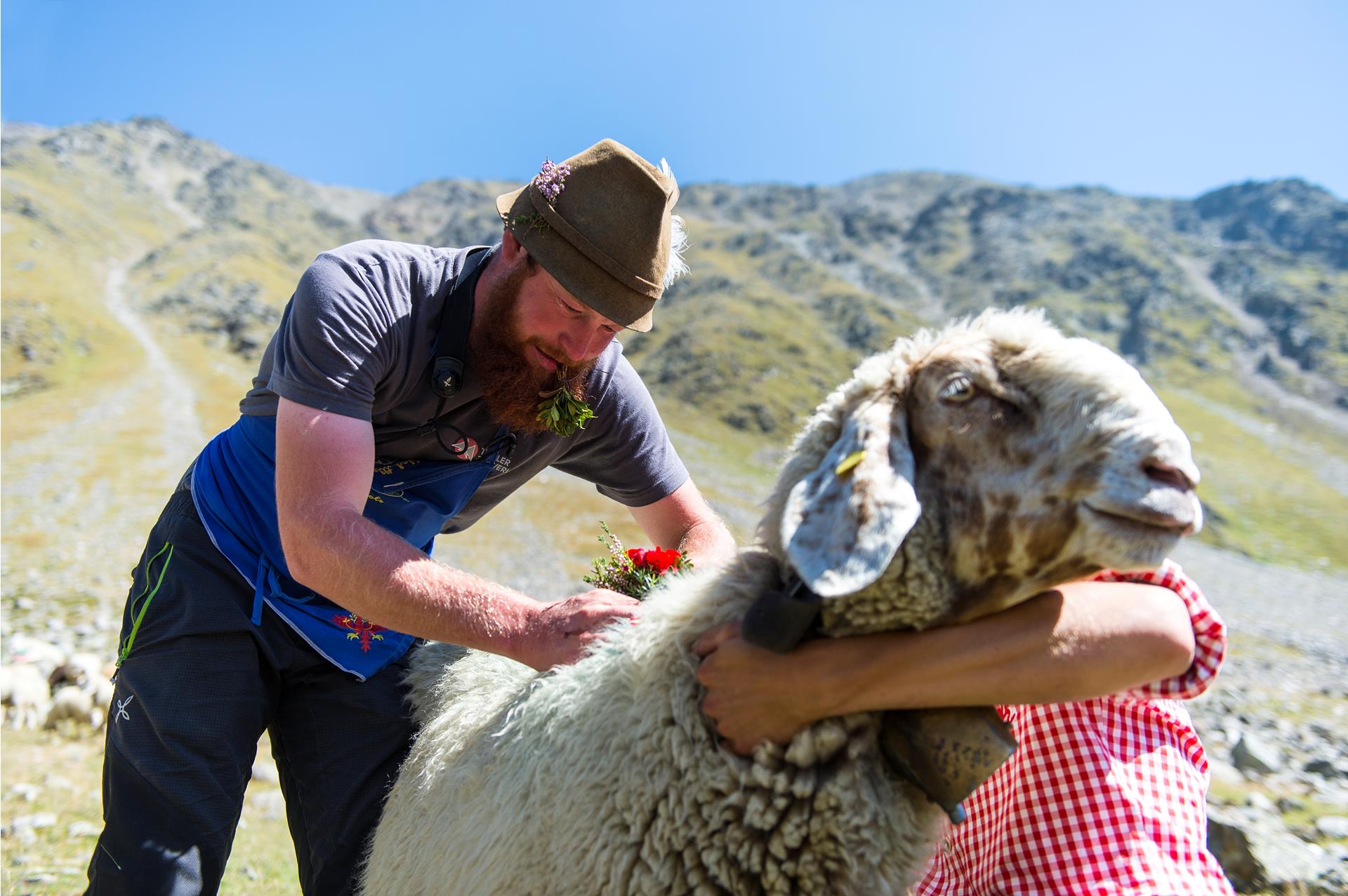 Al mattino presto circa 1.500 pecore partono dalla Rofenberg-Alm nella valle di Vent (A). Il percorso conduce oltre il rifugio Hochjoch Hospiz (ristoro e pernottamento), attraverso terreno alpino (non pericoloso), fino al passo Hochjoch e al rifugio Schöne Aussicht (2.845 m), anch’esso con possibilità di ristoro e pernottamento. La mandria arriva tra le 11:00 e le 12:00. Dopo una breve pausa, prosegue in discesa verso Maso Corto: inizialmente attraverso terreno ripido e roccioso, poi più dolce e infine nuovamente più ripido fino all’arrivo tra le 15:00 e le 16:00. Anche qui il ritorno viene festeggiato con una tradizionale festa dei pastori, con specialità locali, bevande e accompagnamento musicale.