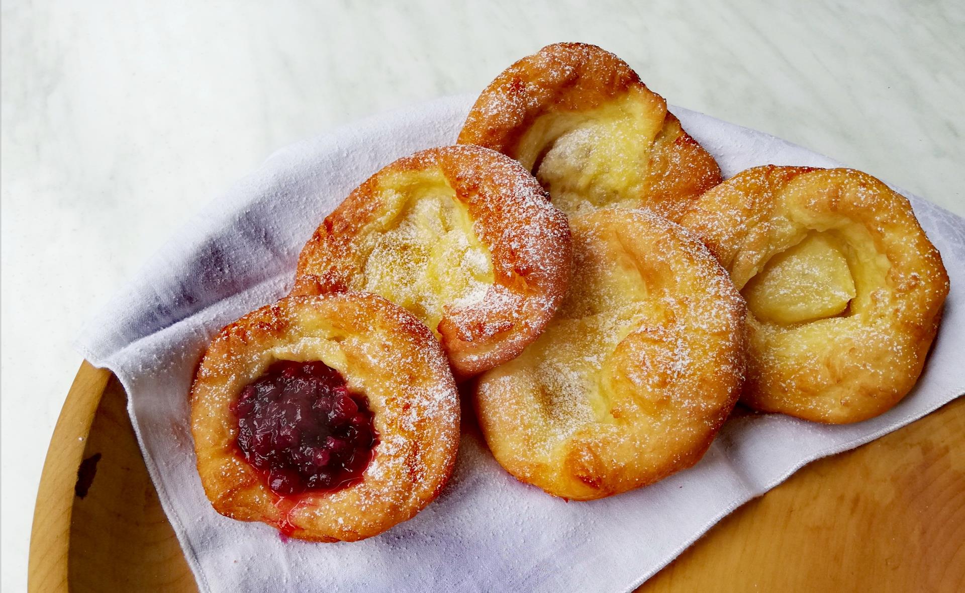 Lasciare lievitare ancora per circa 45 minuti in un luogo caldo. Formare circa 50 palline, schiacciarle e allargarle con le dita, lasciando il bordo più spesso e il centro sottile. Friggere subito nell’olio caldo fino a doratura su entrambi i lati. Scolare su carta da cucina e servire preferibilmente calde.